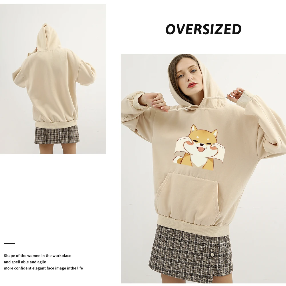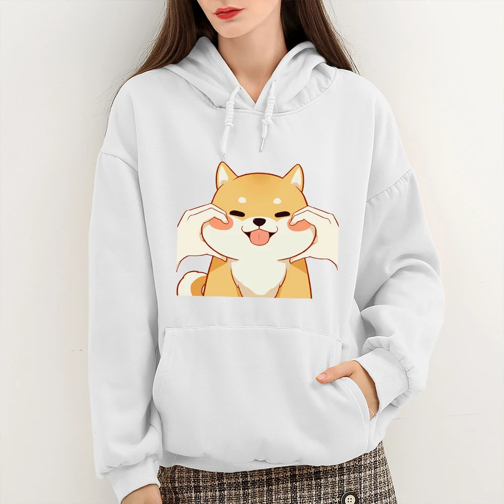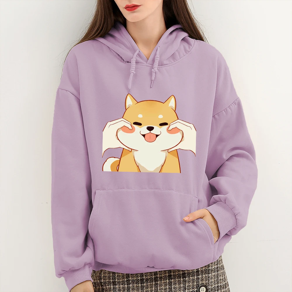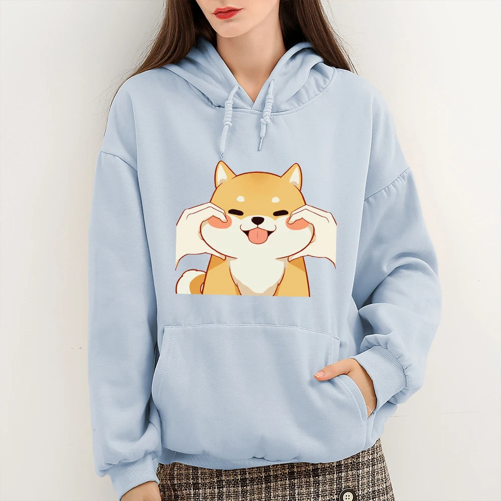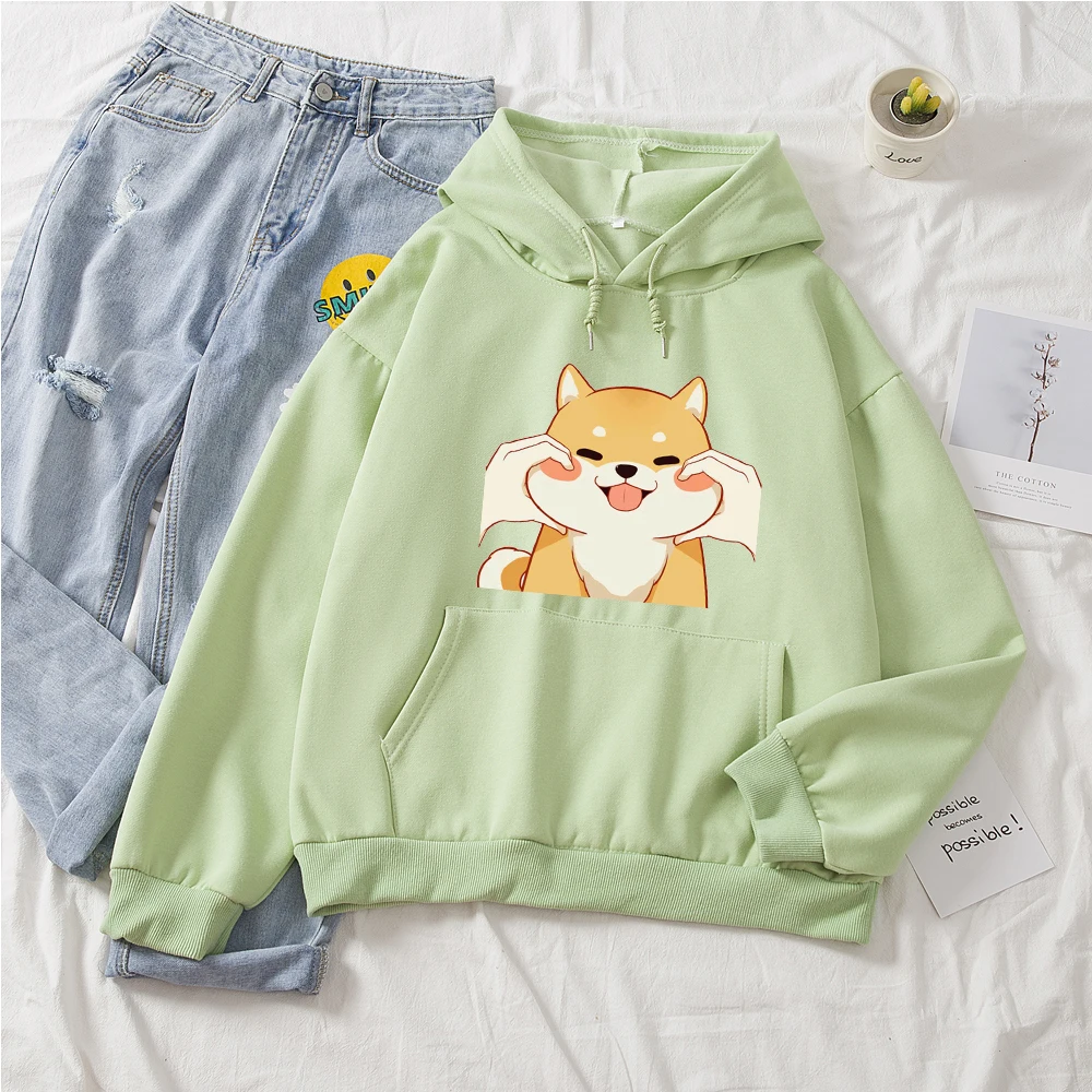 Толстовки с капюшоном с милым принтом собаки из мультфильма, Осенние Забавные милые повседневные хлопковые свободные уличные милые корги, толстовки для женщин