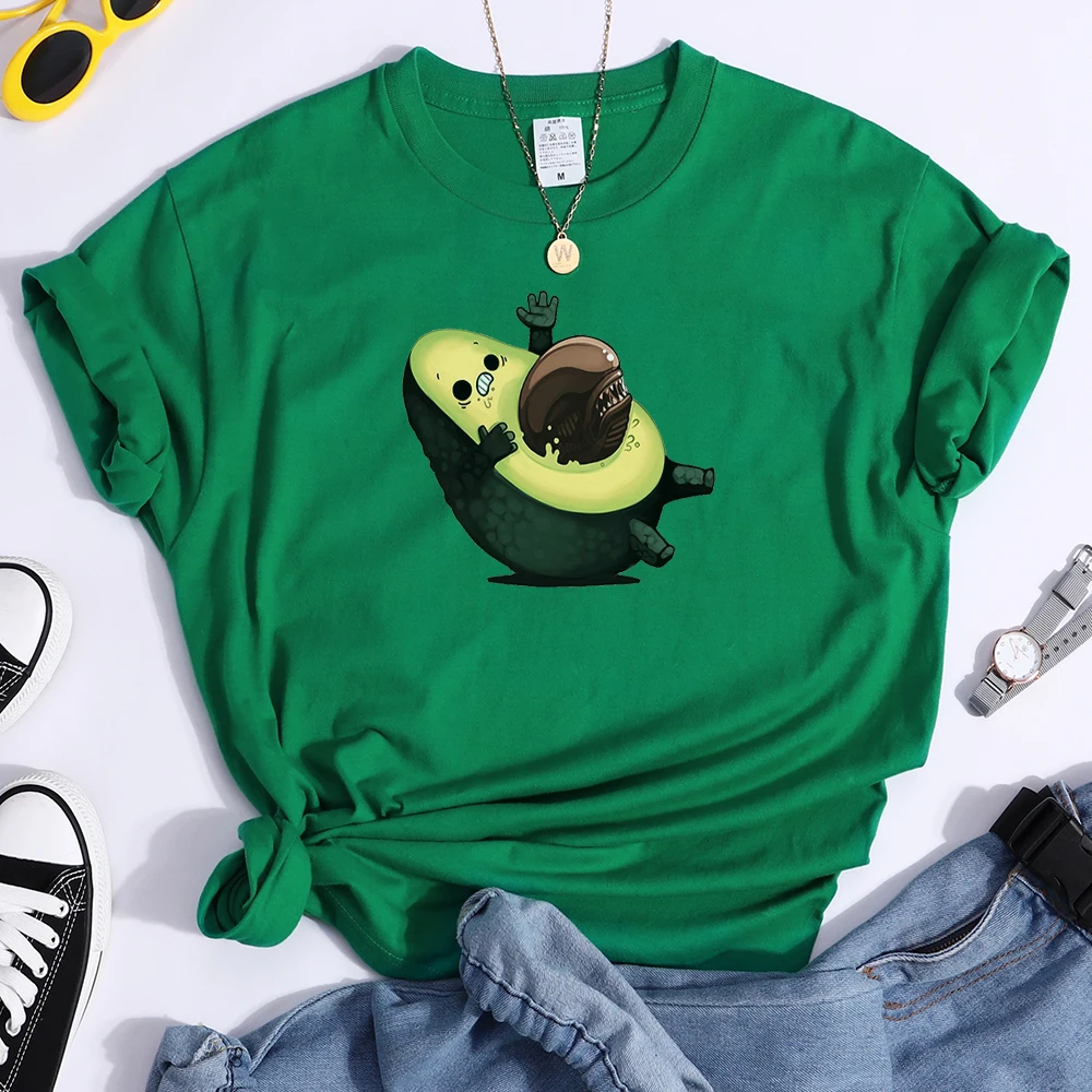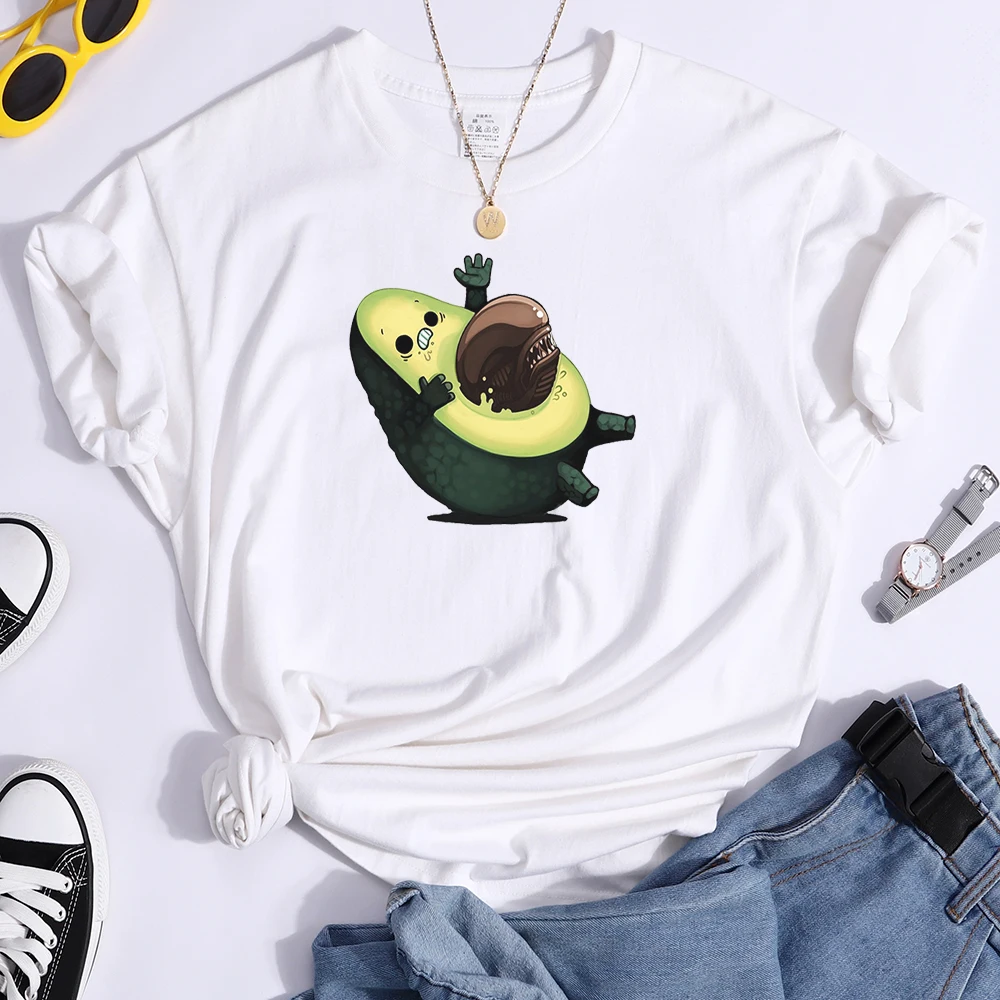 Авокадо с милым принтом футболки для девочек Футболка с изображением в стиле аниме повседневное Топы футболка из дышащей ткани мультфильмы женской одежды летняя одежда в стиле хип-хоп, женские футболки