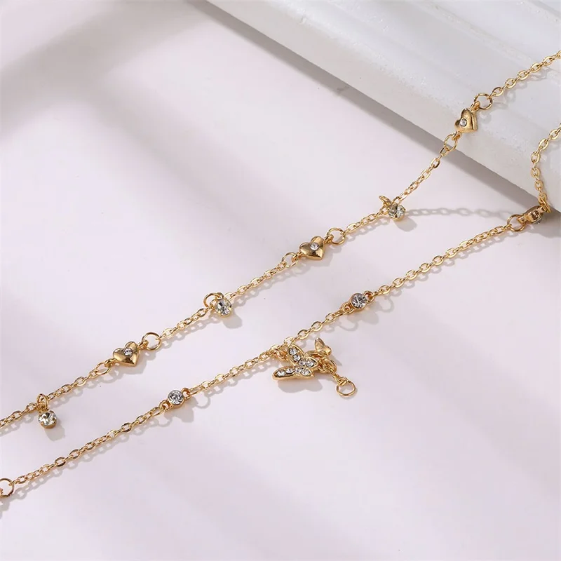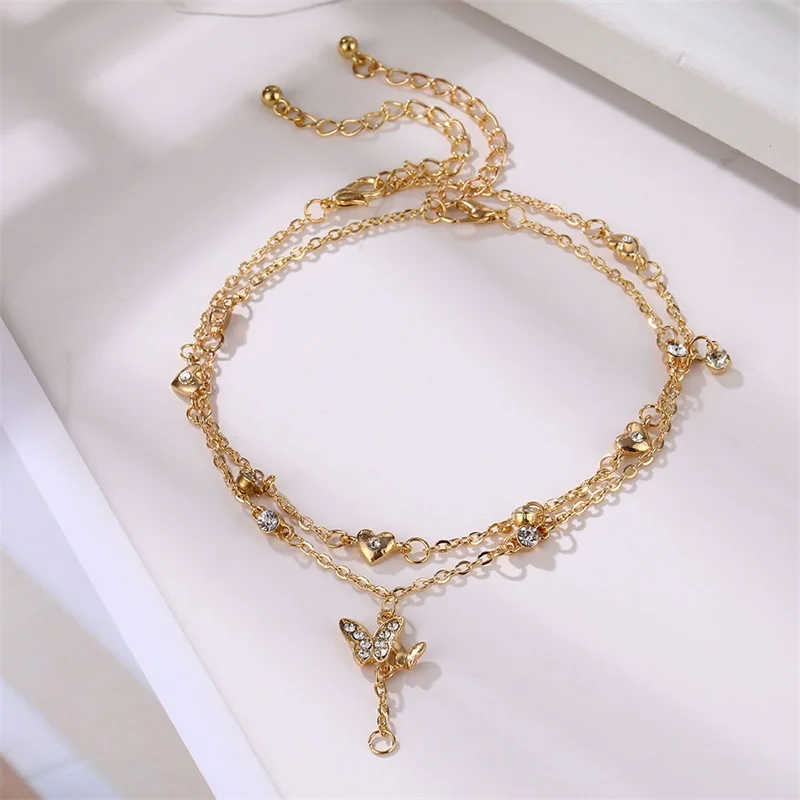 Многослойные простые женские браслеты золотистого цвета с цепочкой в виде сердца бабочки, Пляжная цепочка для ног, женские аксессуары