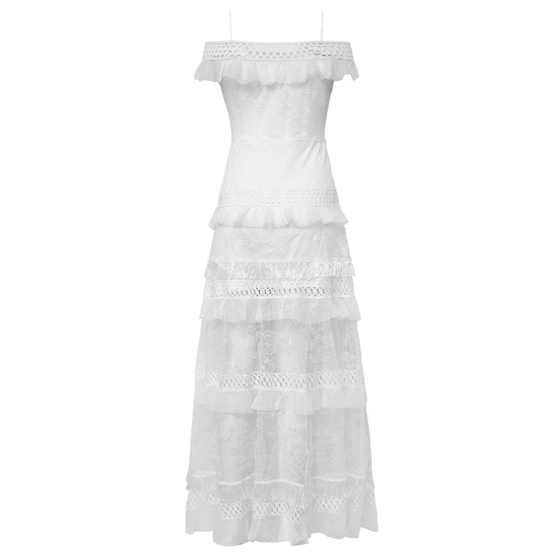 Новинка, женское сексуальное богемное платье с открытыми плечами, модное милое женское платье без бретелек, платье в пол, кружевное платье-футляр с оборками