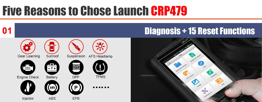Автомобильный диагностический инструмент LAUNCH CRP479 ABS DPF SAS TPMS сброс масла OBD2 автоматический сканер многоязычный анализатор кода двигателя