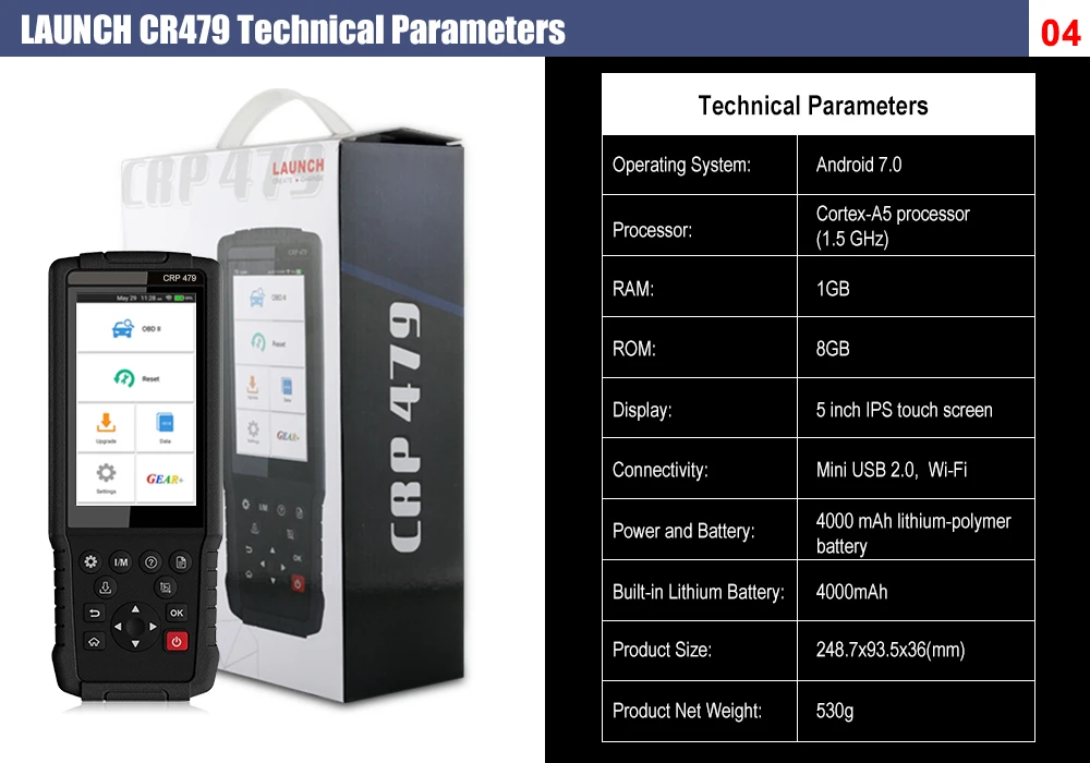 Версия аппаратного обеспеченияLaunch CRP479 OBD2 Scanner
