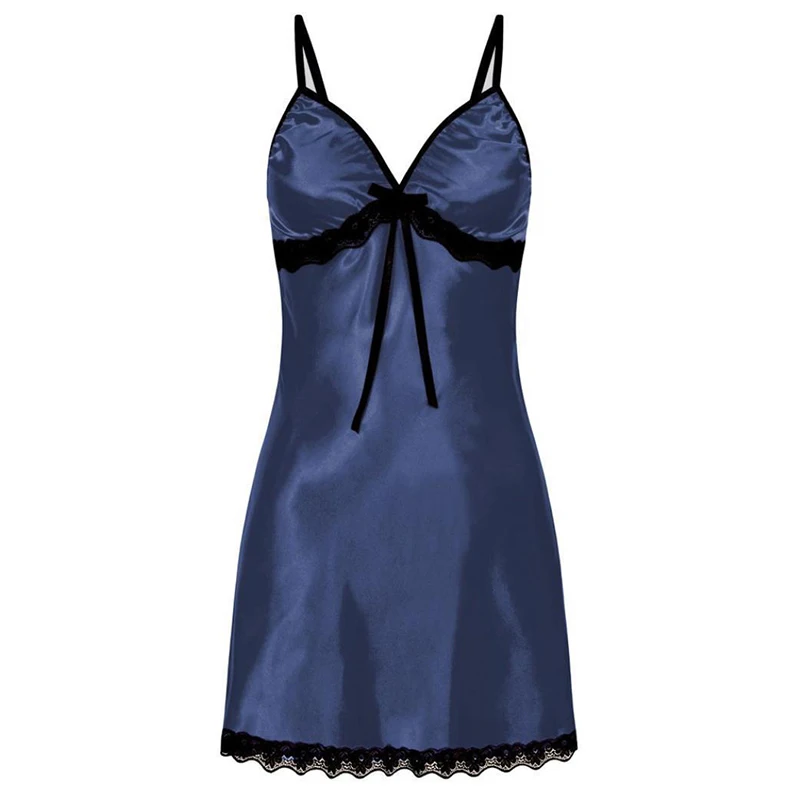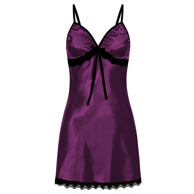Пикантная ночная рубашка, Женская кружевная шелковая атласная ночна...