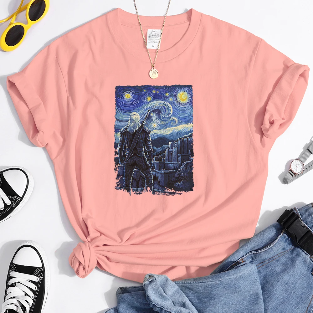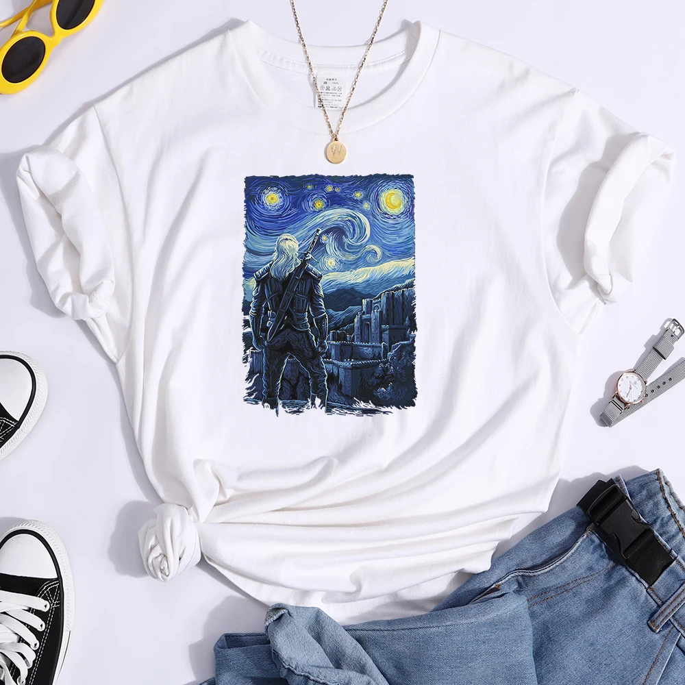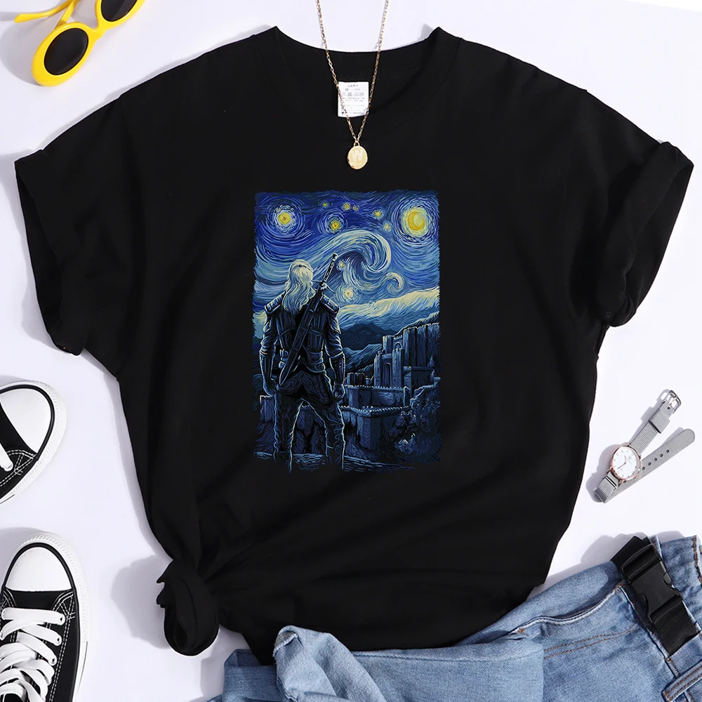 Женские футболки с изображением звездной ночи Ван Гога, повседневная женская одежда, футболки в стиле ретро, модная одежда, дышащая женская футболка