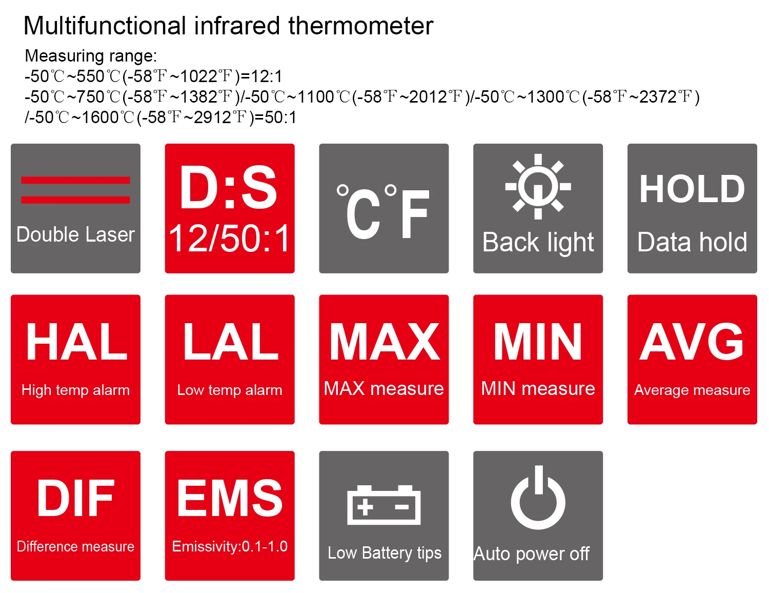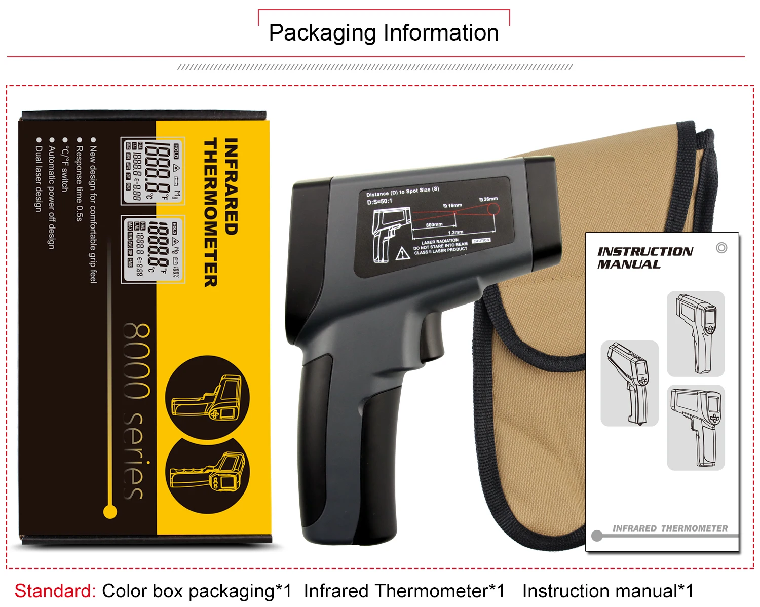 Цифровой пирометр, инфракрасный термометр-50 1600 градусов, одиноч...