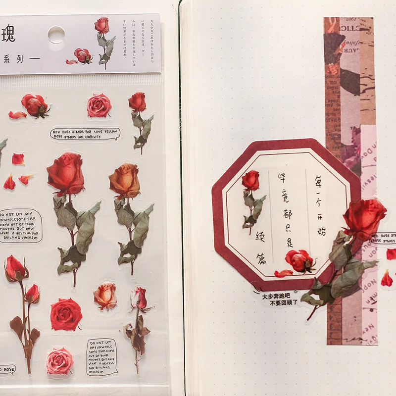 12 видов конструкций натуральный Маргаритка Клевер японский наклейки со словами прозрачный ПЭТ материал цветы листья растения деко наклейки цветок