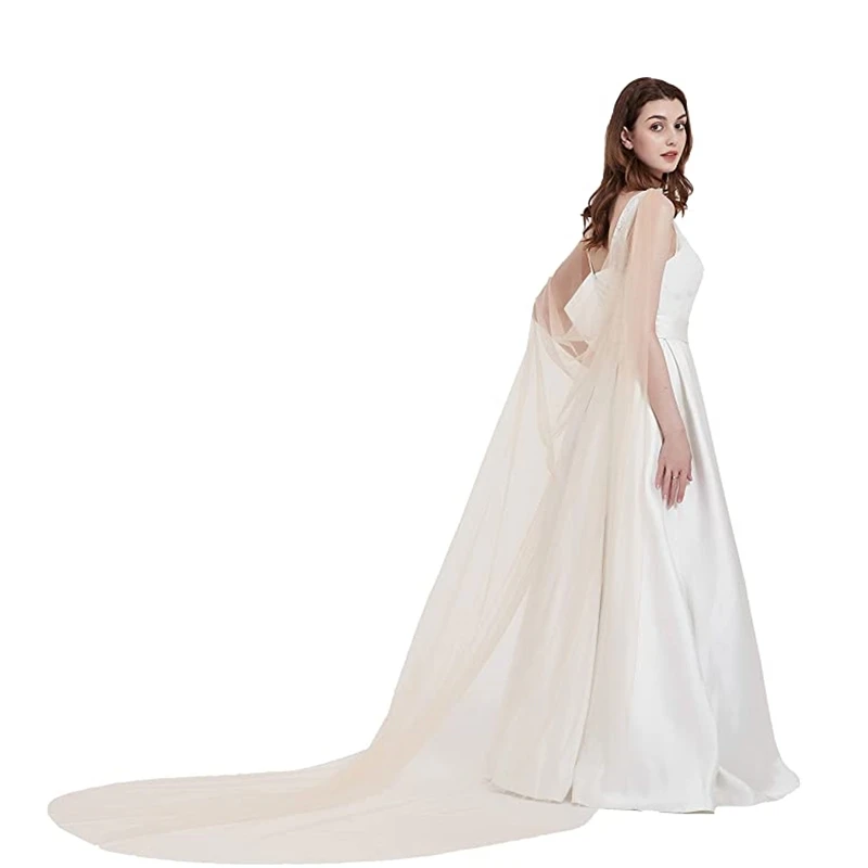 Свадебные накидки, длинная фатиновая накидка для невесты, накидки на плечо для невесты, черные, темно-синие, белые, цвета слоновой кости, цвета шампанского, аксессуары, новинка