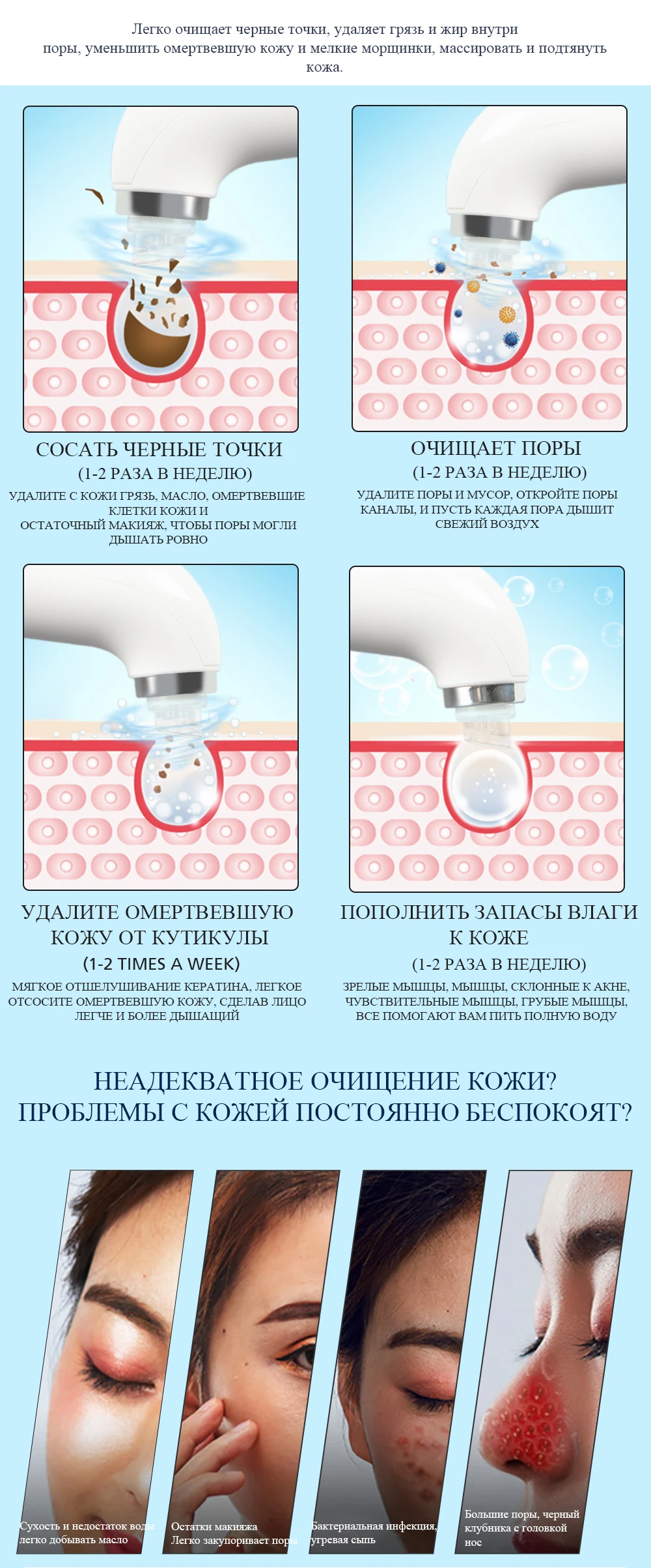 Вакуумный аппарат для очистки пор для удаления черных точек, устройство для удаления прыщей и акне, устройство для глубокого очищения кожи вокруг глаз