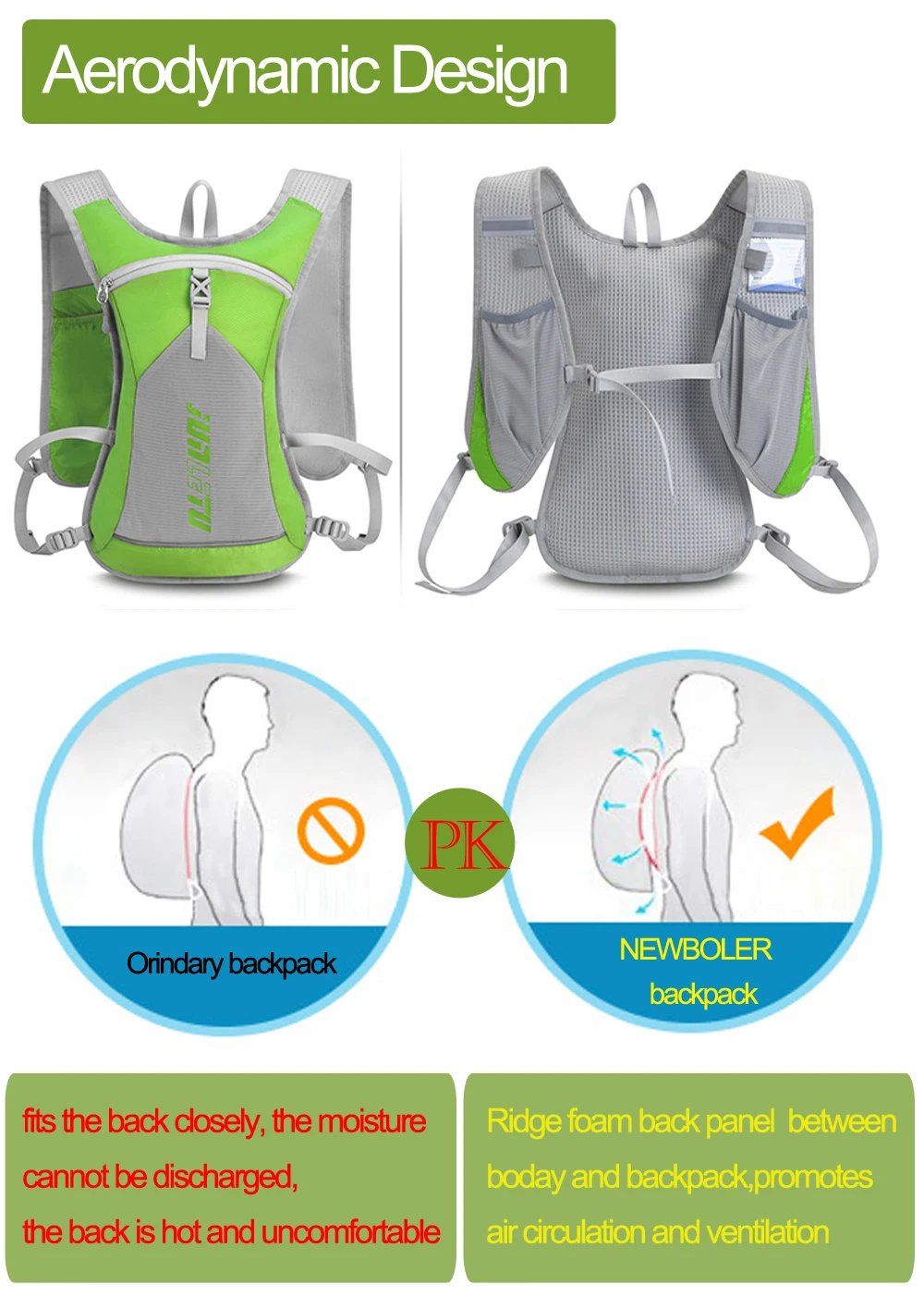 Рюкзак NEWBOLER Hydration изготовлен из высококачественной сетчатой нейлоновой ткани, прочный и легкий. Эргономичный дизайн с мягкой спинкой обеспечивает превосходный опыт, комфорт и воздухопроницаемость.