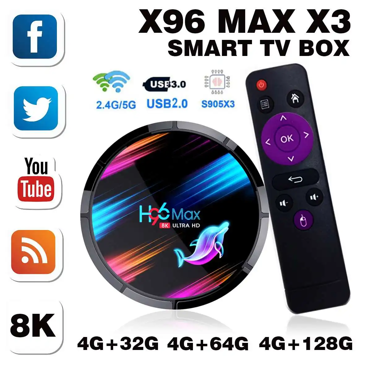 ТВ-приставка X96 Max X3, Android 9,0, четырехъядерный процессор S905X3, Wi-Fi, медиаплеер 3264128 ГБ