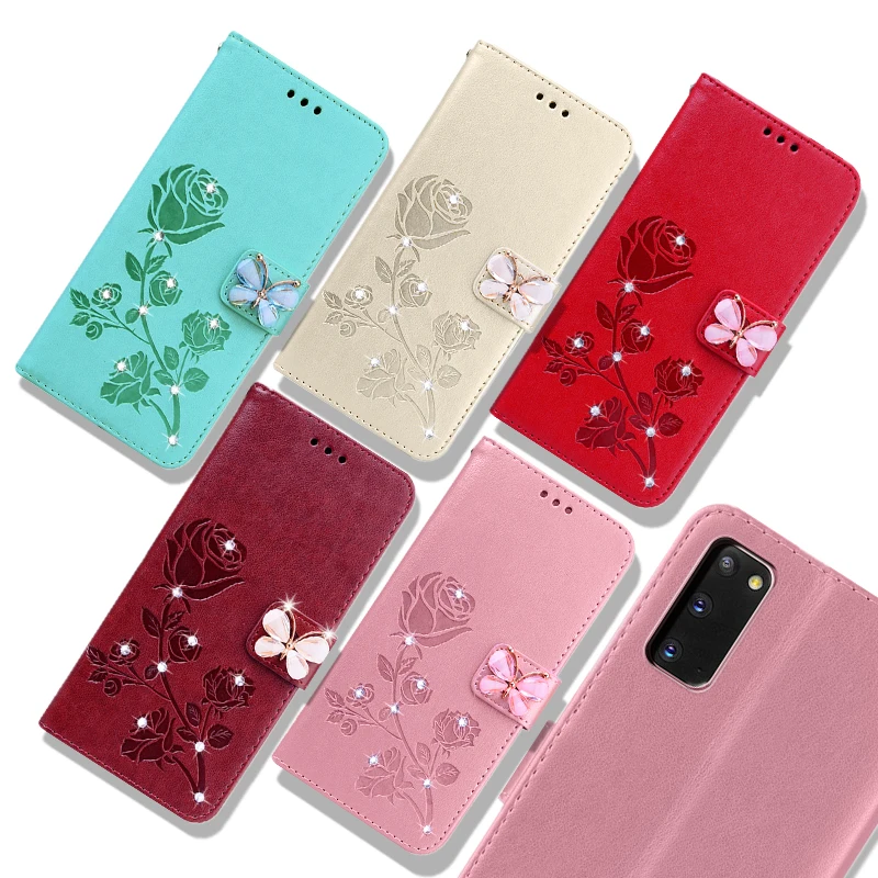Кожаный чехол-бумажник с розами для Samsung Galaxy A M 02S 12 21 21...