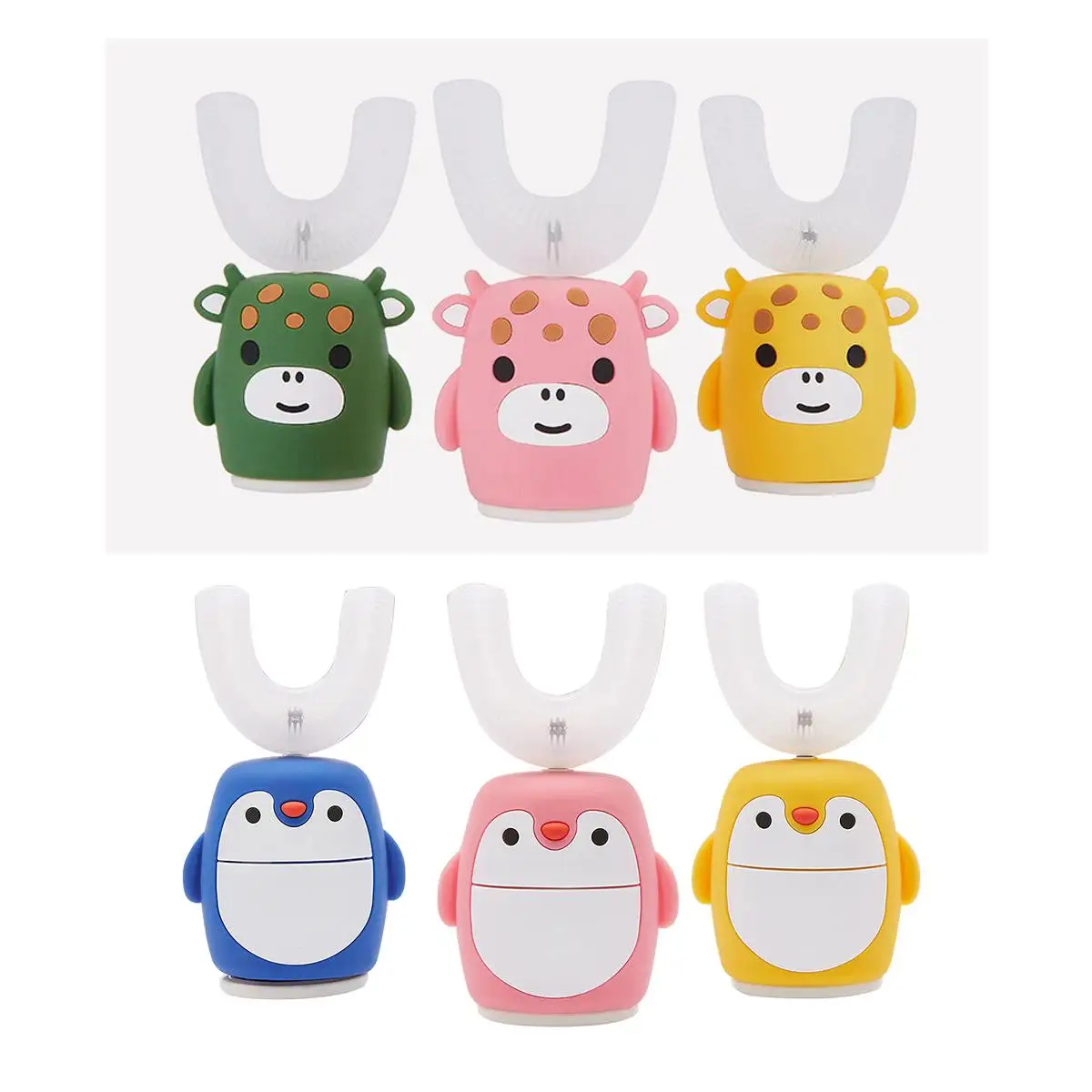 Характеристики:Название продукта: мультяшная силиконовая U-образная зубная щетка с интеллектуальной зарядкой, электрическая портативная зубная щетка для детейМатериал щетины: насадка из пищевого силиконаЦвет: розовый пингвин/желтый Пингвин/голубой пингвин/зеленый теленок/розовый теленок/желтый теленокНоминальное напряжение: 3,2-3,7 вМощность: <5 ВтТипы: зубная щетка 2-6 лет/зубная щетка 6-14 лет/U-головка зубной щетки 2-6 лет/U-головка зубной щетки 6-14 летОсобенности:-Этот продукт использует всенаправленное водонепроницаемое уплотнение дизайн IPX7 удобный, прочный и чистый-U Тип Насадка для зубной щетки дизайн, с использованием пищевого силикона антибактериальный мягкий материал, 360 ° контакт десен и зубов, каждый раз когда вы чистите зубы, вы можете дать рот быстрый и комфортный опыт-Использование данного продукта может стать хорошей профилактикой атрофии десен, способствовать циркуляции пародонтоза крови, уменьшить возникновение пародонтоза