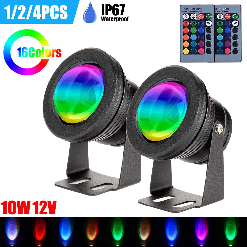 Светодиодный RGB прожектор для пруда с дистанционным управлением, Погружной подводный садовый светильник для ландшафта, газона, уличный светильник для фонтана, бассейна