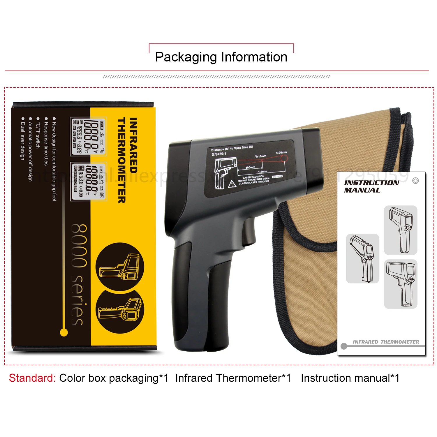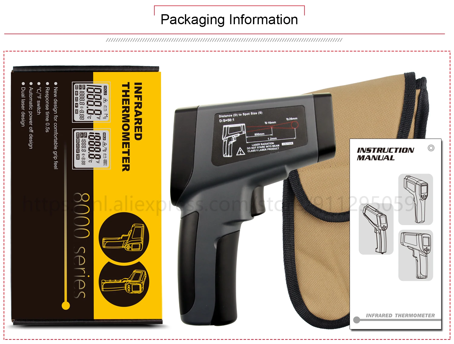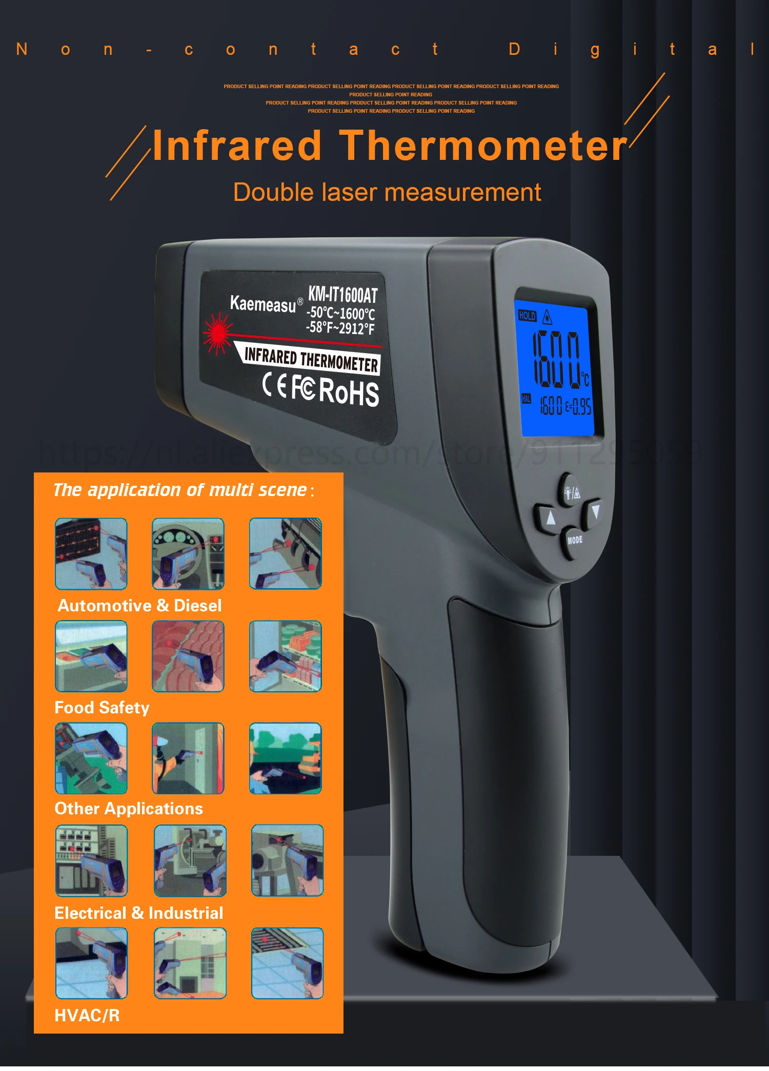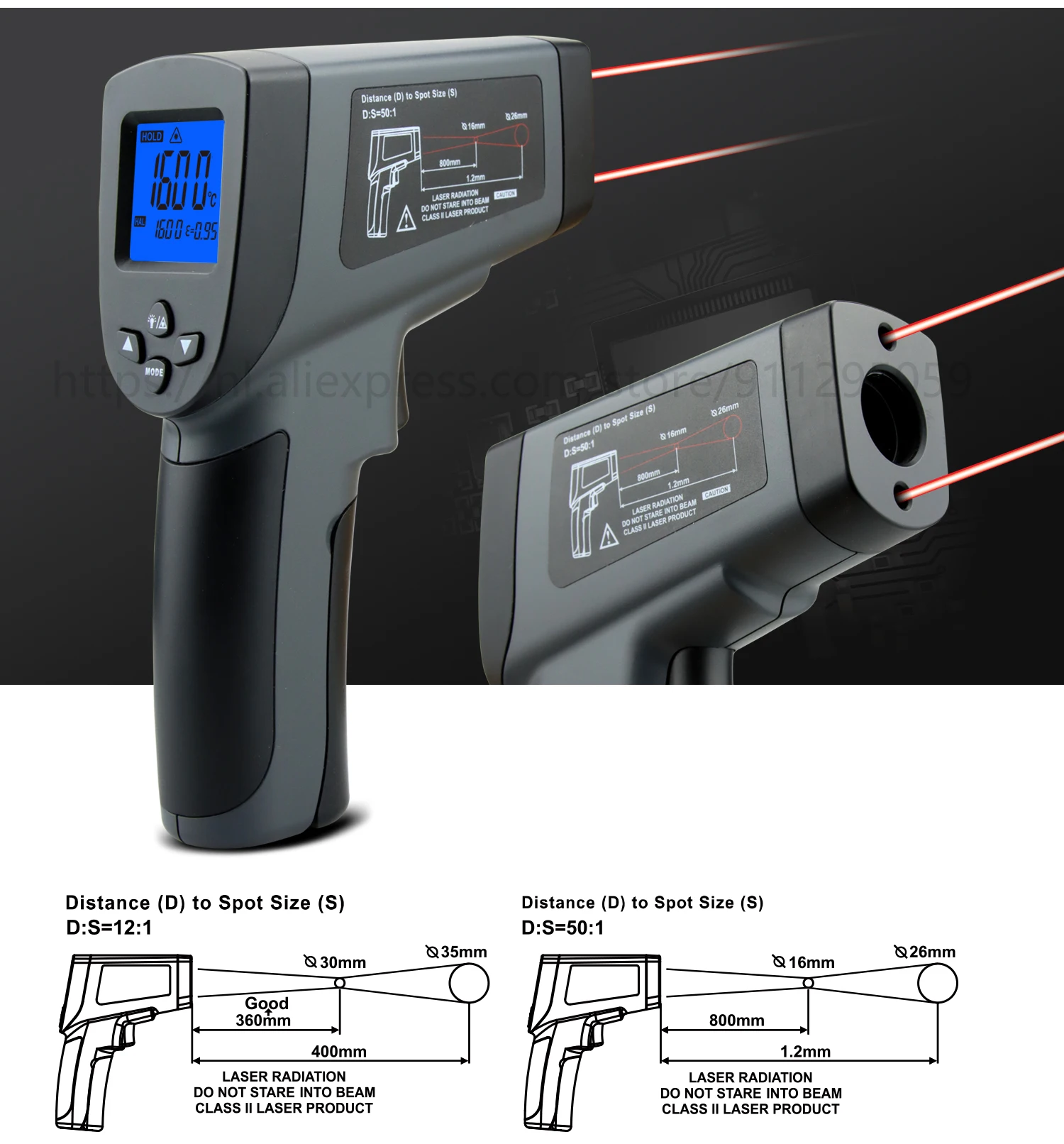 Профессиональный инфракрасный термометр Kaemeasu 50:1 двойной лазерный многофункциональный цифровой промышленный пистолет для измерения высокой температуры