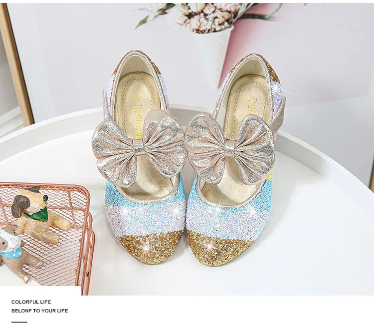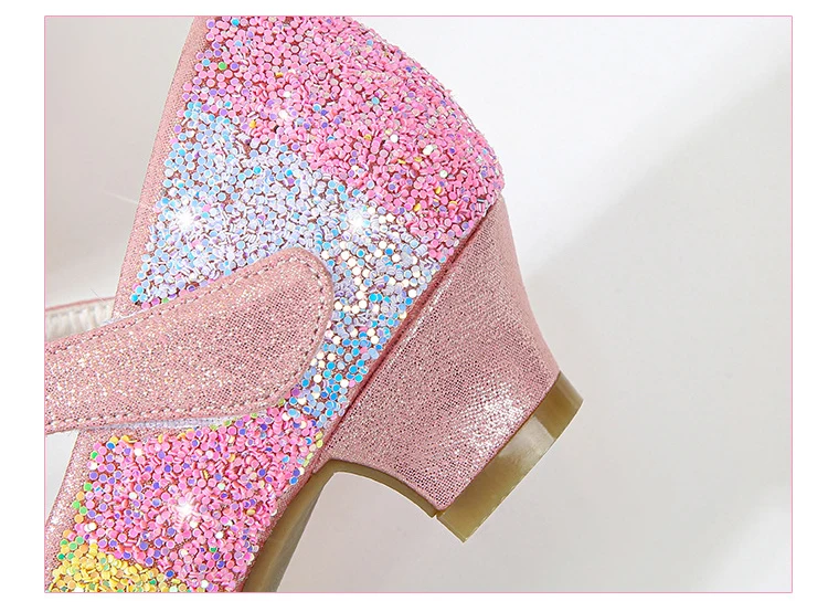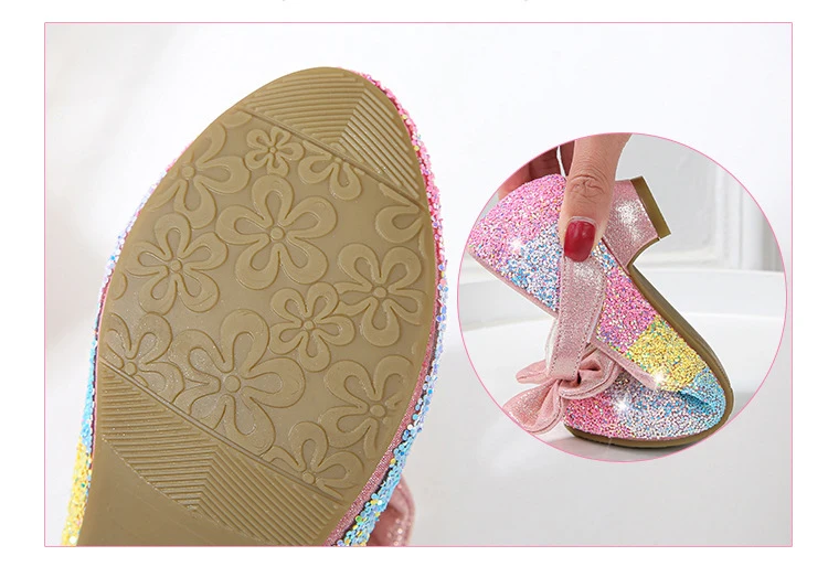 Кожаная обувь для девочек; Обувь принцессы; Детская обувь с круглым носком на мягкой подошве; Обувь принцессы на высоком каблуке с украшением в виде кристаллов; Тонкие туфли