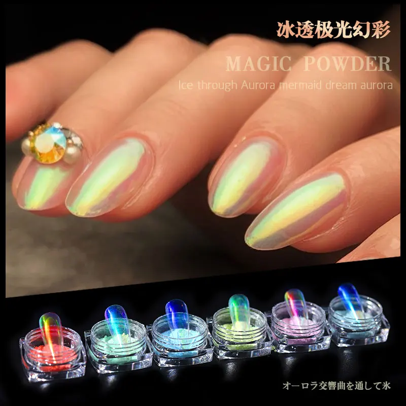 1 коробка полупрозрачная Аврора Русалка порошки для ногтей обнаженн...