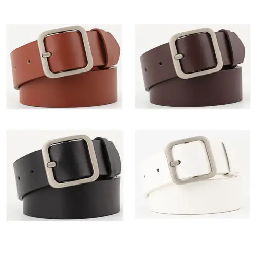 Ремень женский винтажный кожаный, Модный классический однотонный ши...
