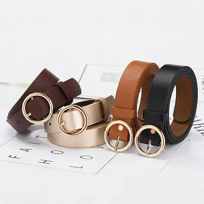 2020 Female Fashion Round Buckle Waist Belt Metal Buckle Casual PU ...