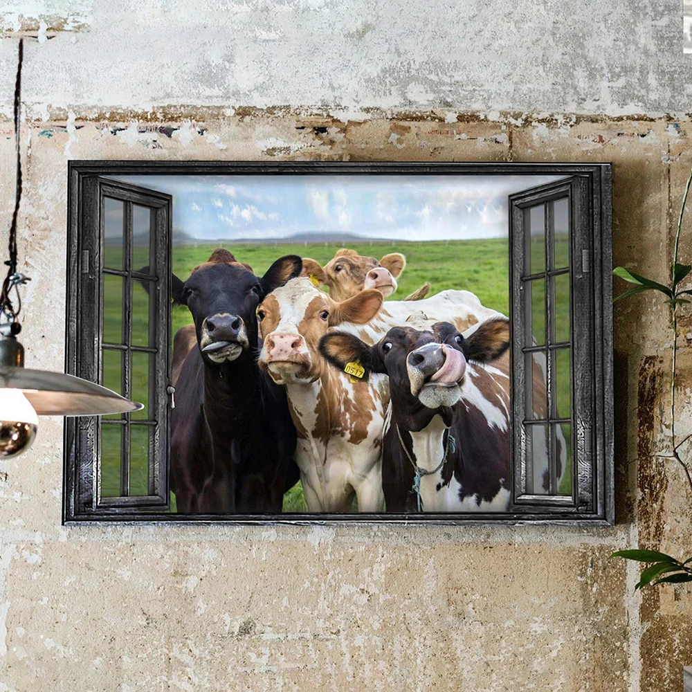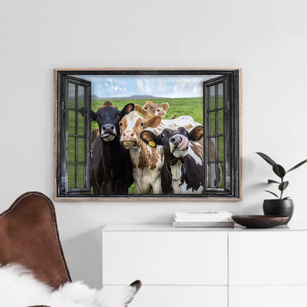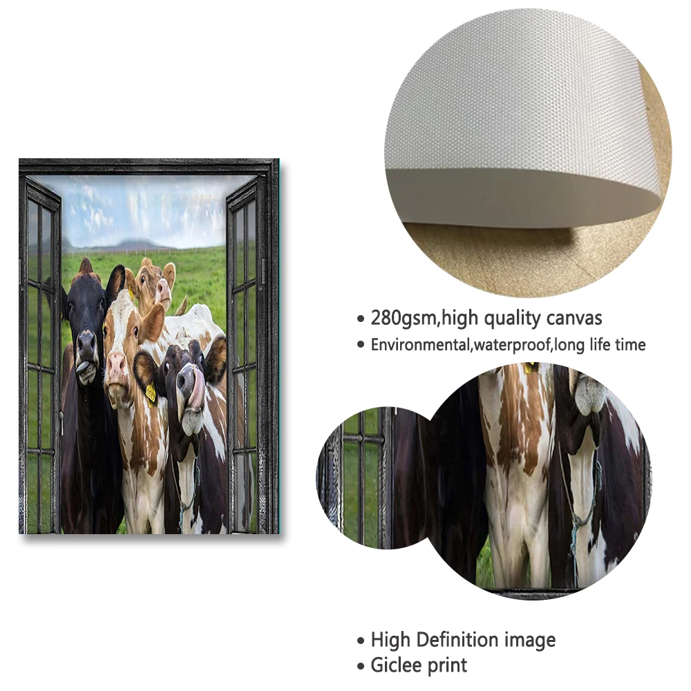 Живопись на холсте, животное, настенное искусство, корова у окна, горизонтальные плакаты и принты, фрески для гостиной, украшение для дома, искусство декора
