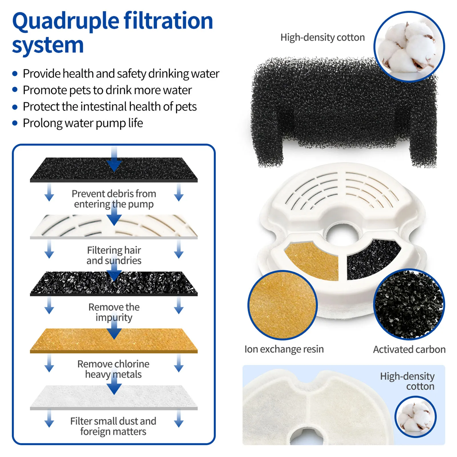 1. Материалы пищевого класса: полупрозрачные материалы позволяют лучше просматривать общий расход воды. Изготовлен из пищевых материалов, более прочный.2. Окно уровня воды светодиодный ным индикатором: прозрачное и удобное окно уровня воды напоминает о добавлении воды. Мягкий синий светодиодный световой индикатор привлечет вашего питомца пить больше.3. Ультра-тихий, маломощный обновленный насос: кошачий фонтан питается от 1,5 Вт ультра-тихий маломощный насос, что обеспечит вам и вашему питомцу спокойную и комфортную обстановку.4. 3 дизайна водоотвода в стиле фонтана: диспенсер для воды для домашних животных имеет 3 дизайна водоотвода в стиле фонтана, что позволяет вам выбрать наиболее подходящий вариант для вашего питомца.5. Система Тройного фильтра: система Тройного фильтра сохраняет воду чистой и свежей, обеспечивая здоровую и гигиеничную воду для ваших любимых питомцев в течение всего дня.Особенности:1. Материал PP, безопасный и экологически чистый.2. 3 вида дизайна водоотвода в стиле фонтана, которые могут привлечь домашних животных пить больше воды, что полезно для здоровья3. 2 л, большая емкость для домашних животных.4. Бесшумный водяной насос, съемный, легко моется.Спецификация:Название: умный диспенсер для воды для домашних животных 2 лЦвет: синий, серый, голубой, оранжевыйИсточник питания: 5V1AМощность: 1,5 ВтДлина кабеля: 1,8 мЕмкость: 2 лМатериал: ППВес: около 0,57 кгУпаковочный лист: