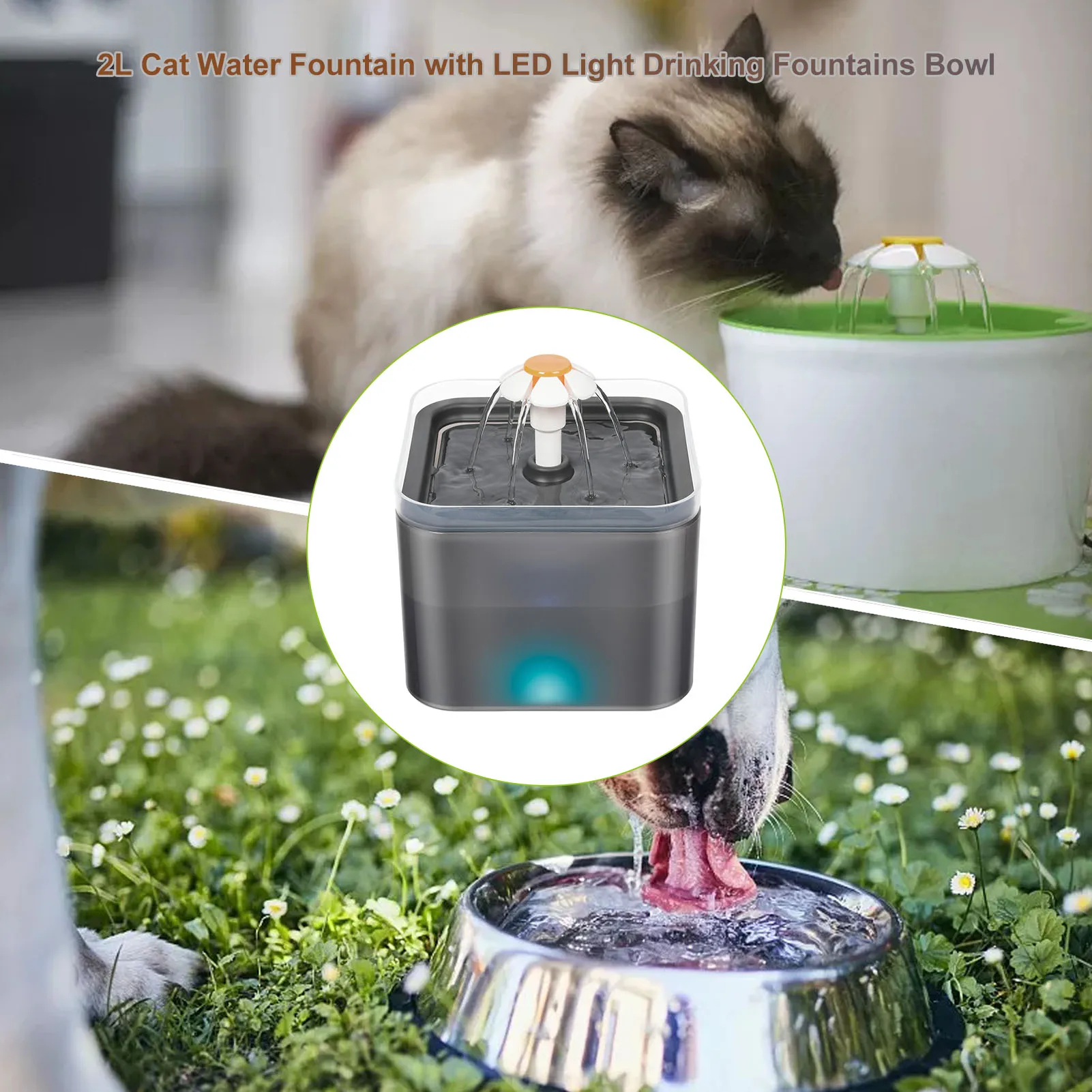 Автоматический фильтр-фонтан для кошек, дозатор 2 л, поилка со светодиодсветильник кой, чаша для воды для кошек, Котят, щенков, собак