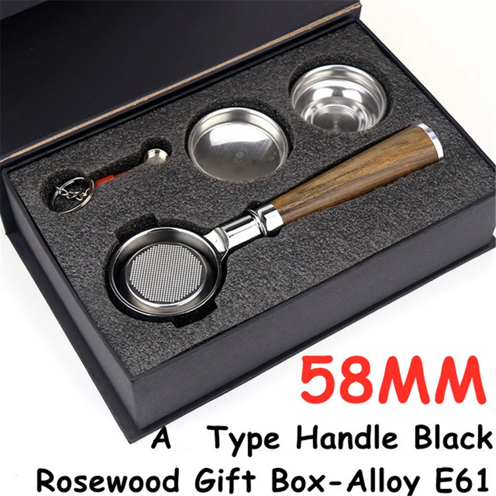 Бездонный портативный фильтр для кофе, эспрессо, деревянная или пластиковая ручка, фильтр 58 мм, кофейная корзина из нержавеющей стали для экспобара