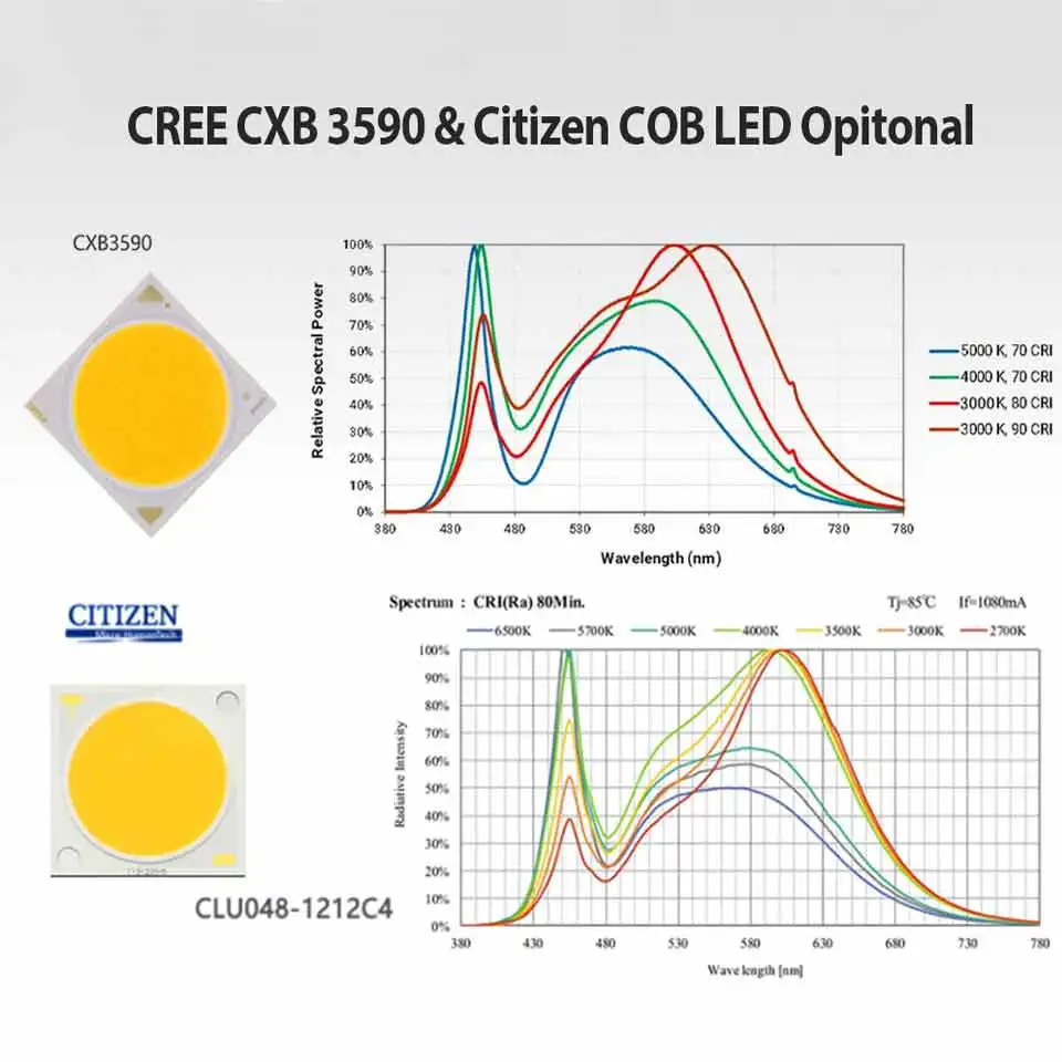 ХарактеристикиReal Full Specturm CREE CXB3590 Citizen 1212 COB LED grow light