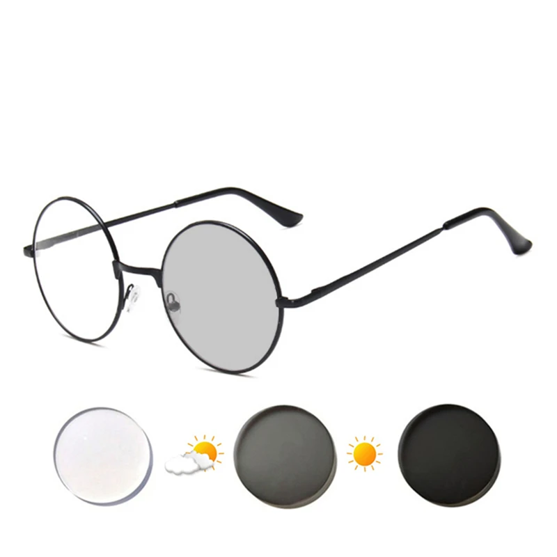 Фотохромные с защитой от синего излучения Рецептурные очки для близоруких-0,5 до-10 для мужчин и женщин, сплав, круглая оправа, близорукость, астигматизм F178