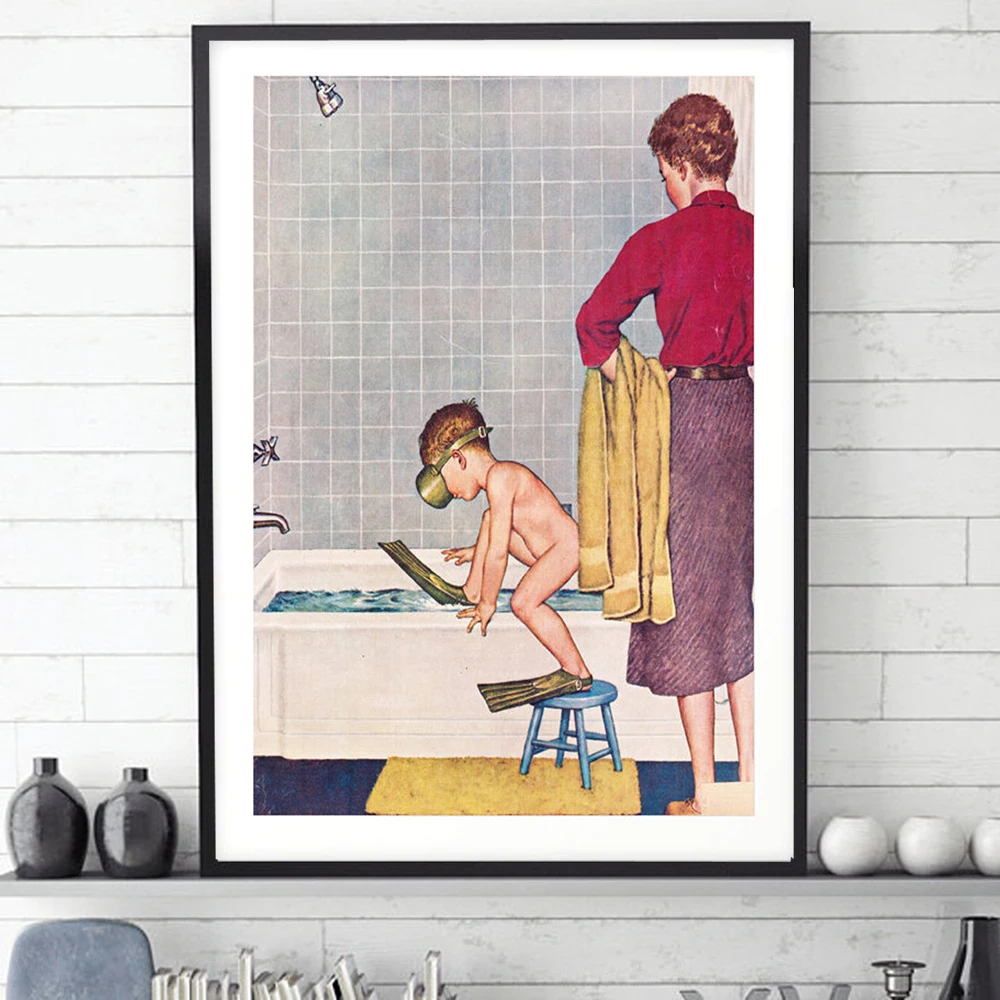 Я хочу погружать в воду, забавный постер для ванной, Настенная картина, винтажная Картина на холсте, Настенная картина, Современное украшение для ванной комнаты