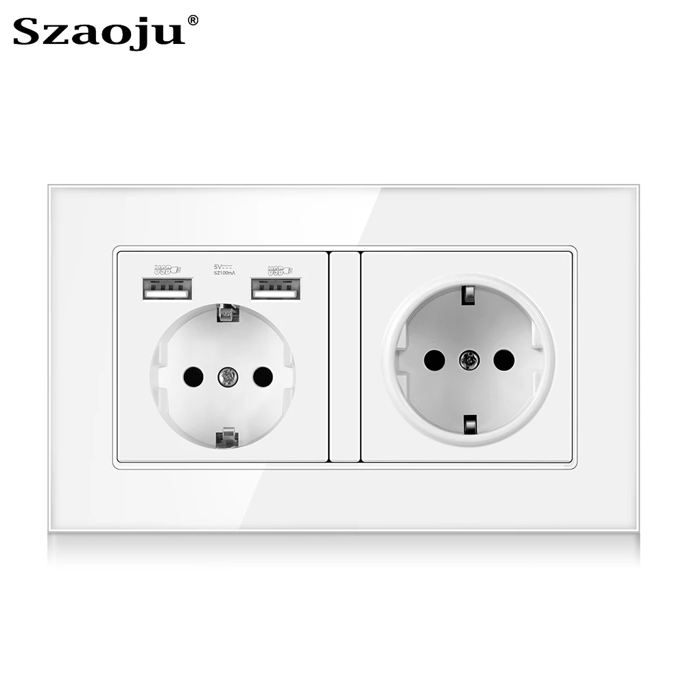 Настенная розетка Szaoju с двумя рамами, USB, 16 А, 110-250 в перем. Тока, 146 х86 мм