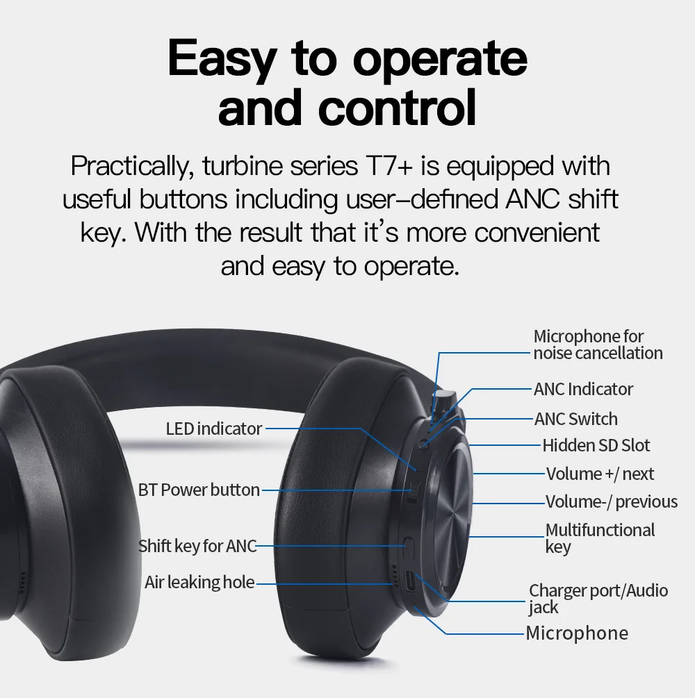 Bluetooth-наушники Bluedio T7 Plus, беспроводная гарнитура с активным шумоподавлением и поддержкой Bluetooth 5,0