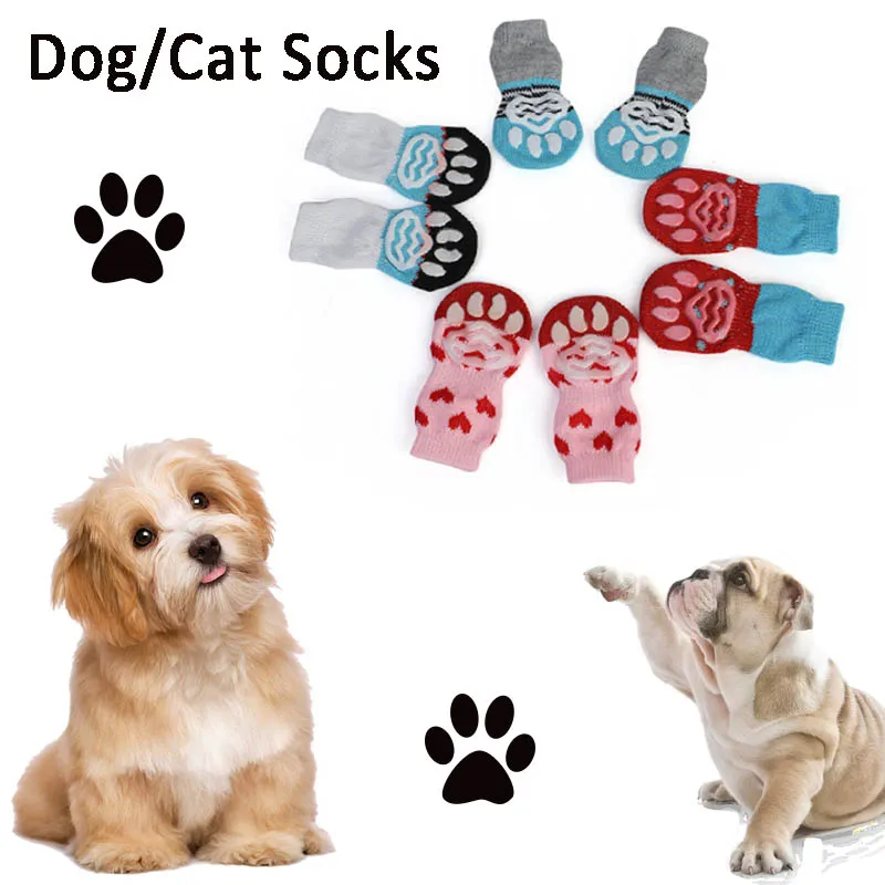 Носки трикотажные для маленьких собак, хлопок, Нескользящие, носки для защиты лап, для осени и зимы, 4 шт.