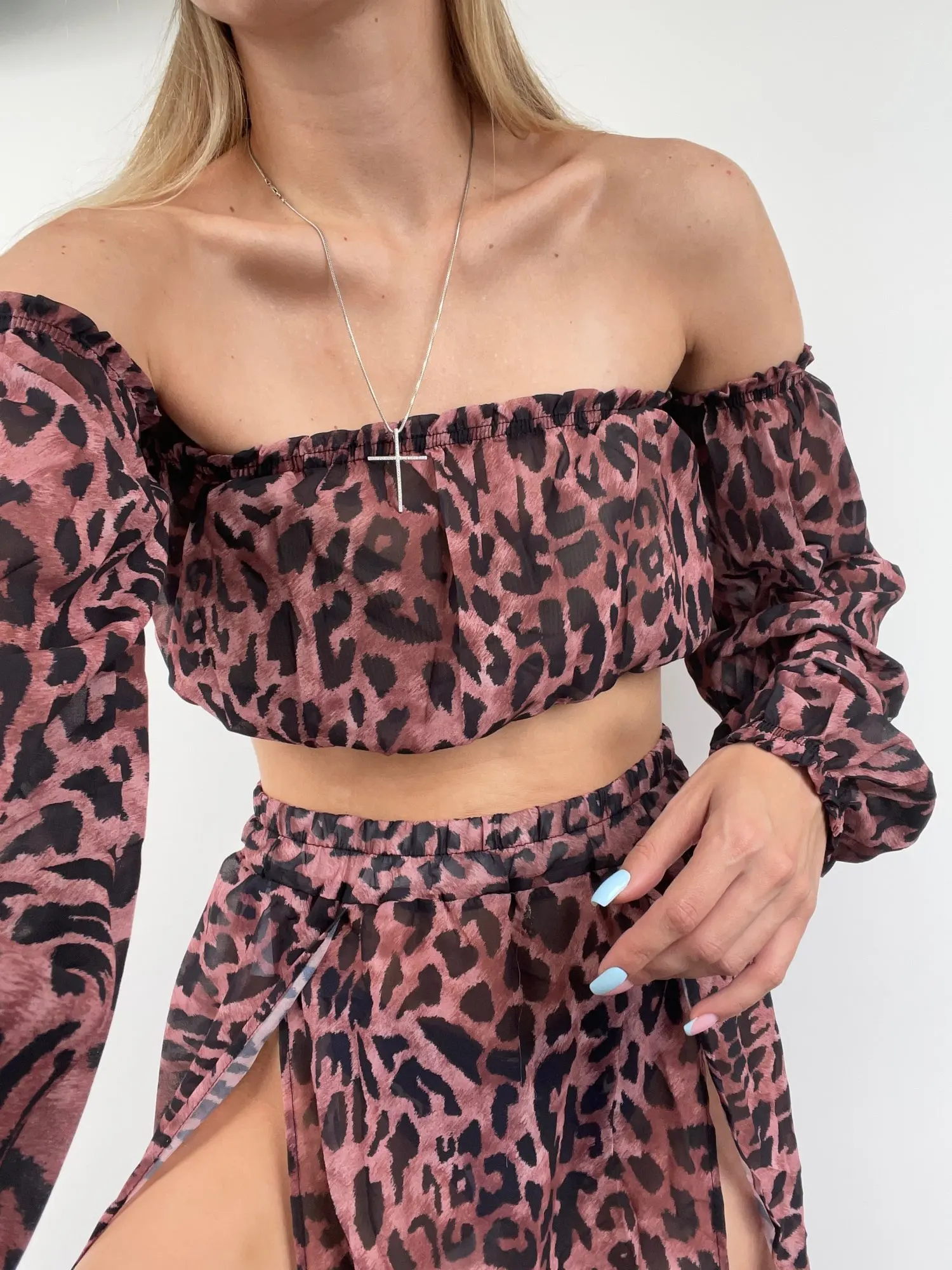 Цвет как на фото, только топ короче чем на фото, для большой груди будет просто тряпочкой узкой , а в целом классный комплект )