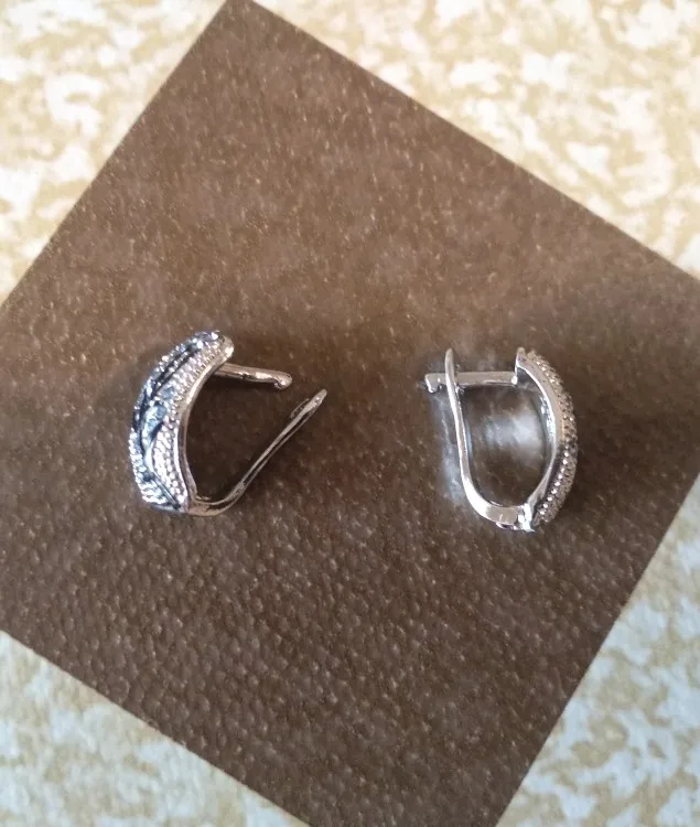 на фото виглядає ліпше ніж вживу кольцо проба є 925 кульчики без проби застібка погано заходить бовтається колір кольца відрізняється від сережок мені комплект не сподобався не рекомендую