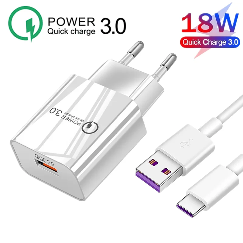 Зарядное устройство USB C 18 Вт, быстрое зарядное устройство QC 3,0...