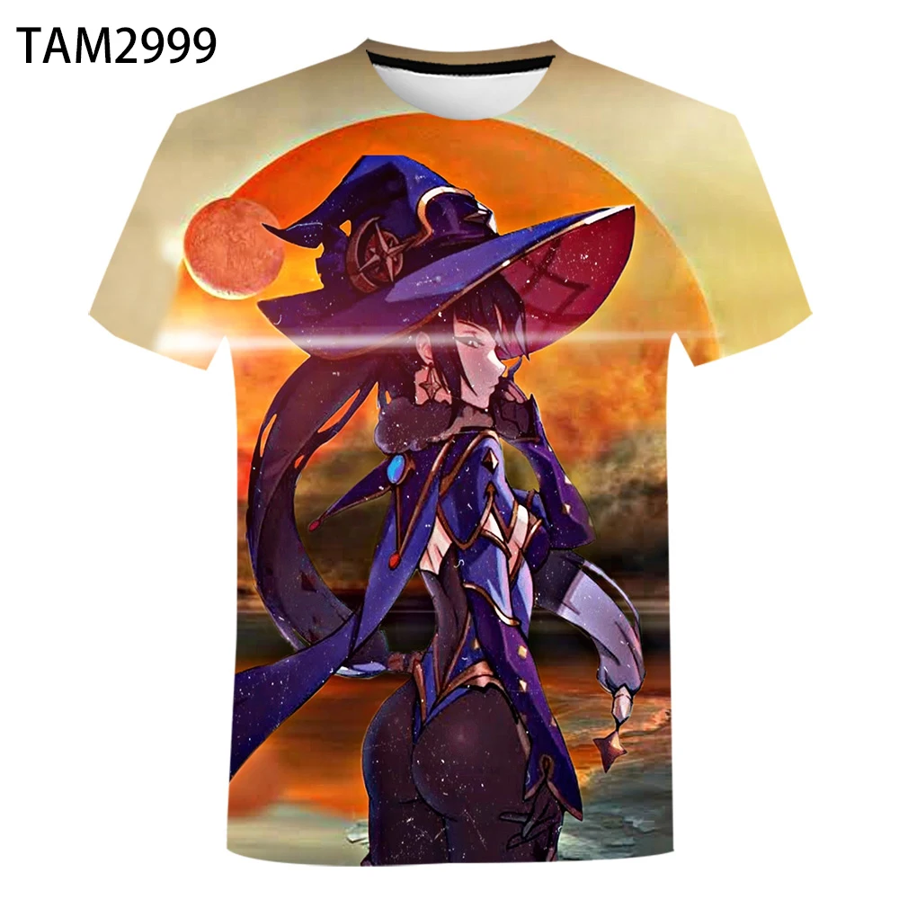 2021 модная футболка с японским аниме Genshin Impact 3d, повседневн...