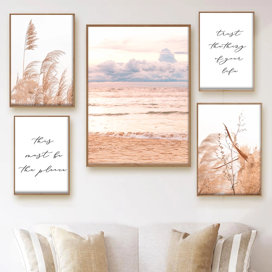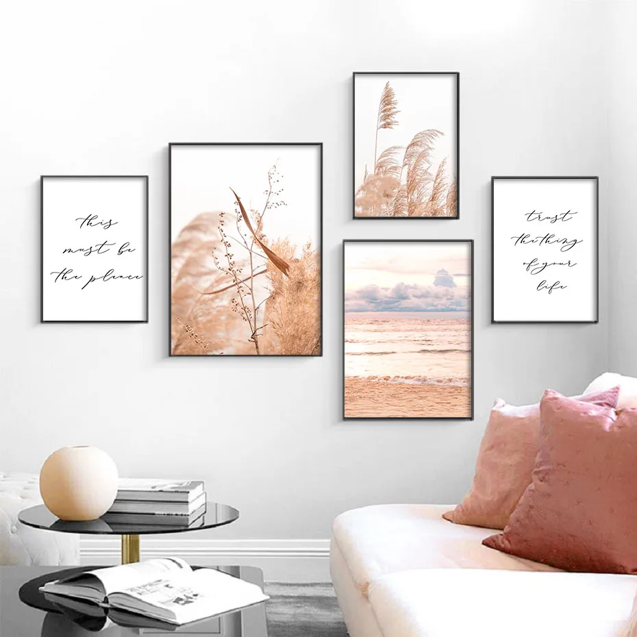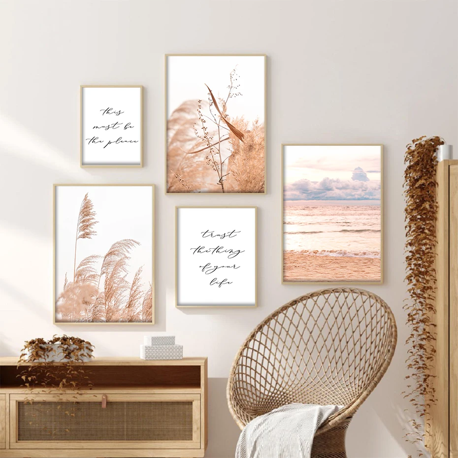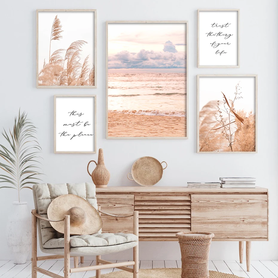 Пампасная трава богемный пляж настенная Картина на холсте прибрежная Печать художественные плакаты и картина печать для гостиной домашний декор