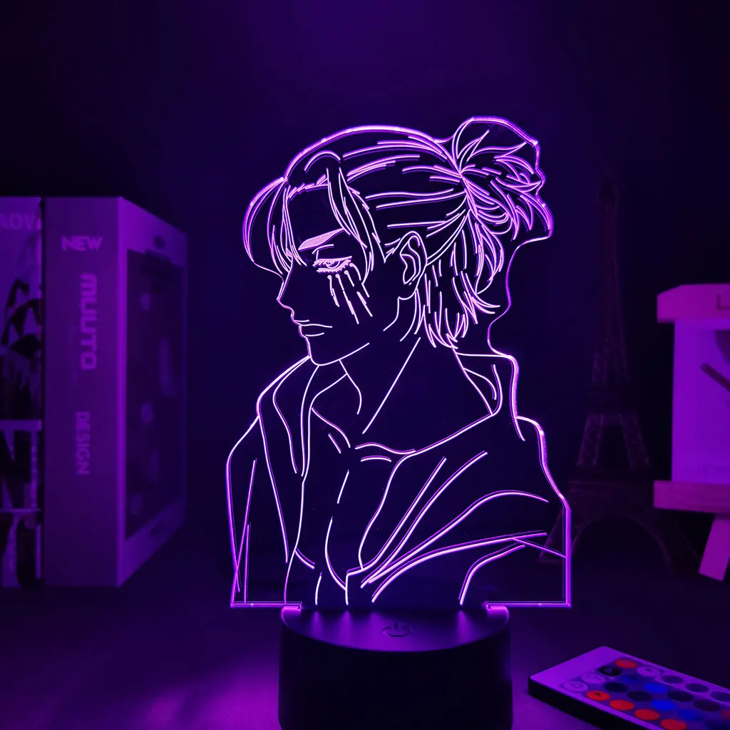 Женская фигурка Эрена из атаки на Титанов, украшение для спальни, ночник для детей, подарок на день рождения, 3d-лампа