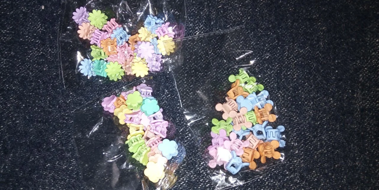 Милые маленькие заколки для волос, но они сильно пахнут и их нужно было помыть мыльной водой. Они в порядке после ванны.
