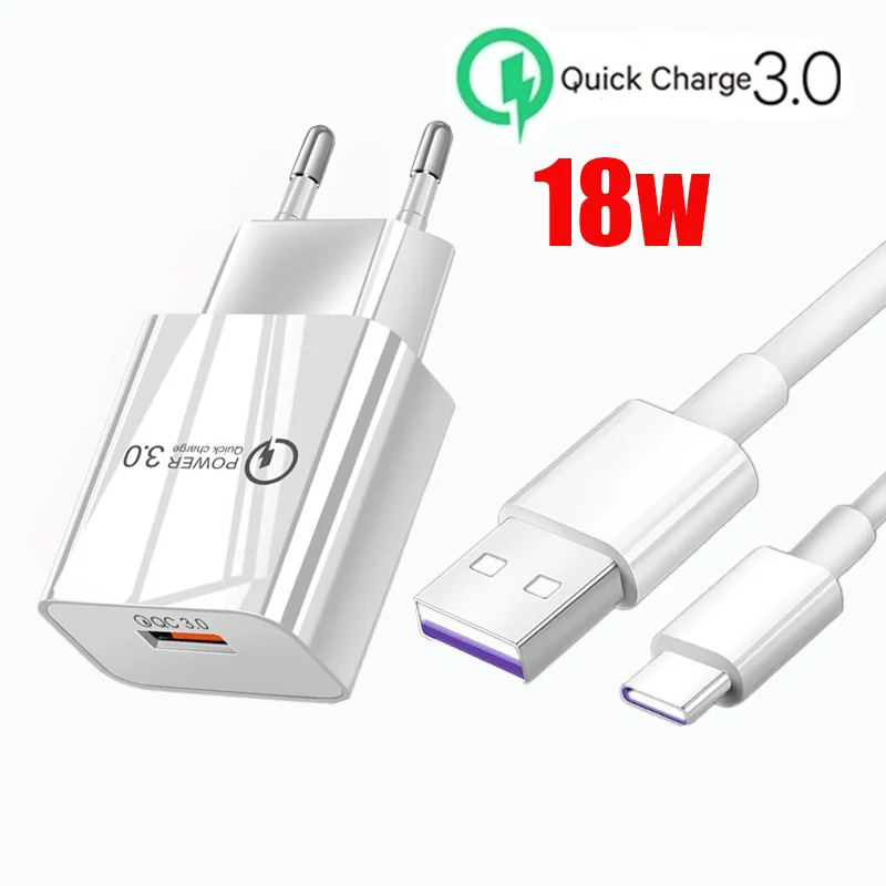 Кабель USB C, зарядное устройство для быстрой зарядки QC 3,0, европ...