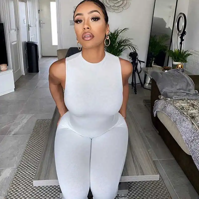 2020 Новый женский комбинезон без рукавов Bodycon спортивный костюм...
