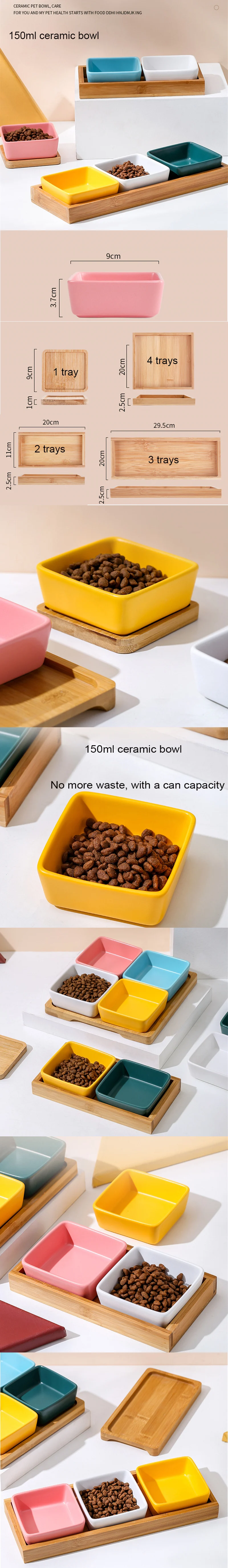 Керамика миска для кошек и собак блюдо с бамбуковой подставкой не проливается корм для домашних животных Кормушка для кошек, щенков, маленьких собак миска для домашних животных принадлежности для кормления