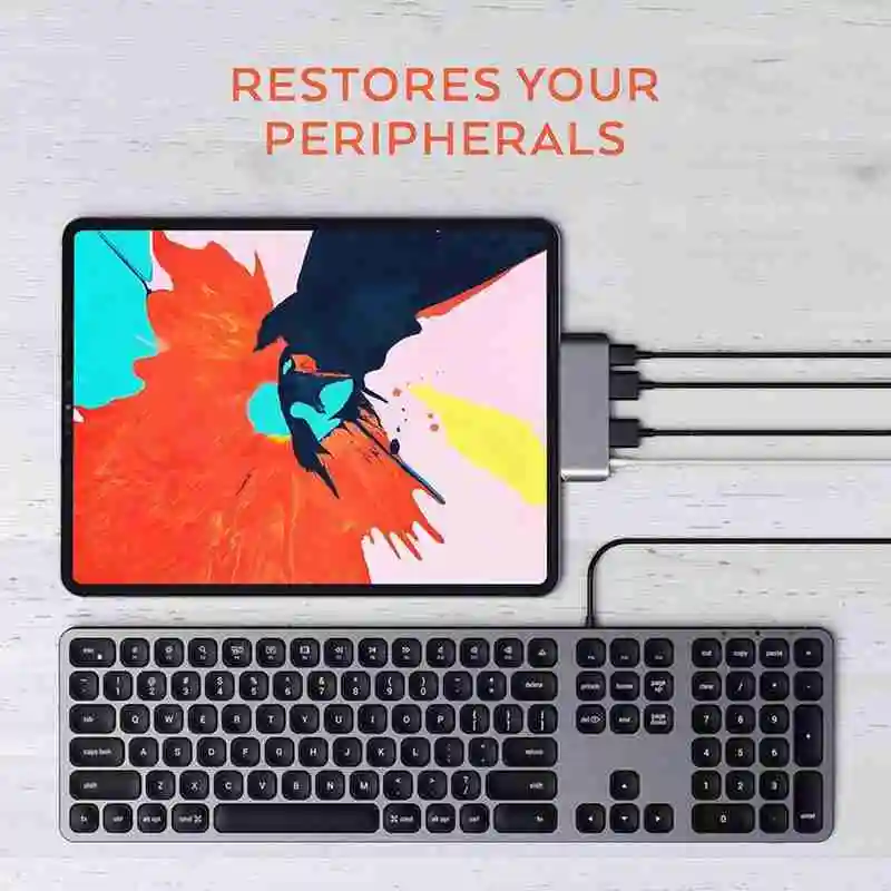 Особенности-С потрясающим 4K HDMI-совместимым дисплеем (30 Гц),-USB-C PD 3,0 QI Беспроводная зарядка, USB 3,0 порт 3,5 мм для наушников, все по одному USB-C соединения.-С его дизайном plug and play, проще, чем когда-либо, подключить все ваши устройства на ходу.-Предназначен для нового iPad Pro 2019Упаковка: 1 хаб Type-CОписаниеОдин из первых адаптеров специально разработан для нового iPad Pro 2018 года, что обеспечивает портативный доступ ко всем медиаустройствам для мобильного телефонаПотрясающий 4K HDMI-совместимый дисплей-Наслаждайтесь высокой яркостью, высоким разрешением 4K HDMI-совместимый дисплей (30 Гц) iPad Pro 2018 для безбарьерных презентаций, конференц-звонки и потоковое видео в любое время и в любом месте!USB-C источник питания-позволяет осуществлять двустороннюю зарядку, чтобы быстро зарядить iPad Pro 2018 или как портативный внешний аккумулятор (при подключении к iPad) для зарядки подключенных USB-C-устройств. Мы рекомендуем использовать адаптер питания, по крайней мере, 30 Вт для того, чтобы поддерживать скорость зарядки восстановить периферийные устройства-Тип-C мобильный Pro обеспечивает 3,5 мм для наушников, И дополнительный порт USB 3,0 для передачи фотографийСовместимость с USB-C-2018 iPad Pro, Samsung Galaxy S9 Plus / S9, 8 Plus / 8, Note 9/8, Microsoft Surface Go, Surface Book 2, Google Pixel 3 XL / 3, LG V30, Huawei Mate 20, HTC U12 +, Microsoft Lumia 950 XL / 950 и т. д. iPad 2017 и более ранние версии не Поддерживается