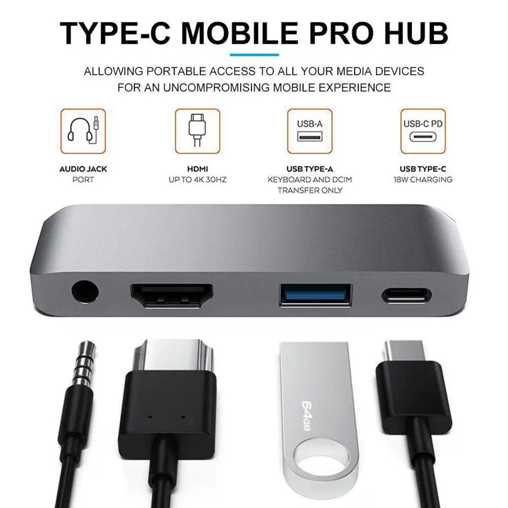 Тип USB-C мобильный Pro Hub адаптер с USB-C PD зарядки USB Tablet Pro для 2020 3,5 мм iPad Джек концентратор 3,0 наушники B0Q8