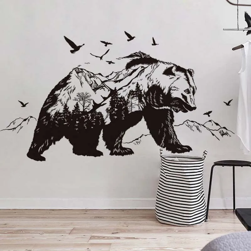 Гора черный медведь прозрачная пленка гостиная спальня настенные на...