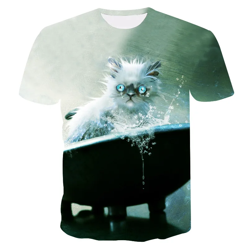 Футболка Мужскаяженская с 3D-принтом кота и коротким рукавом