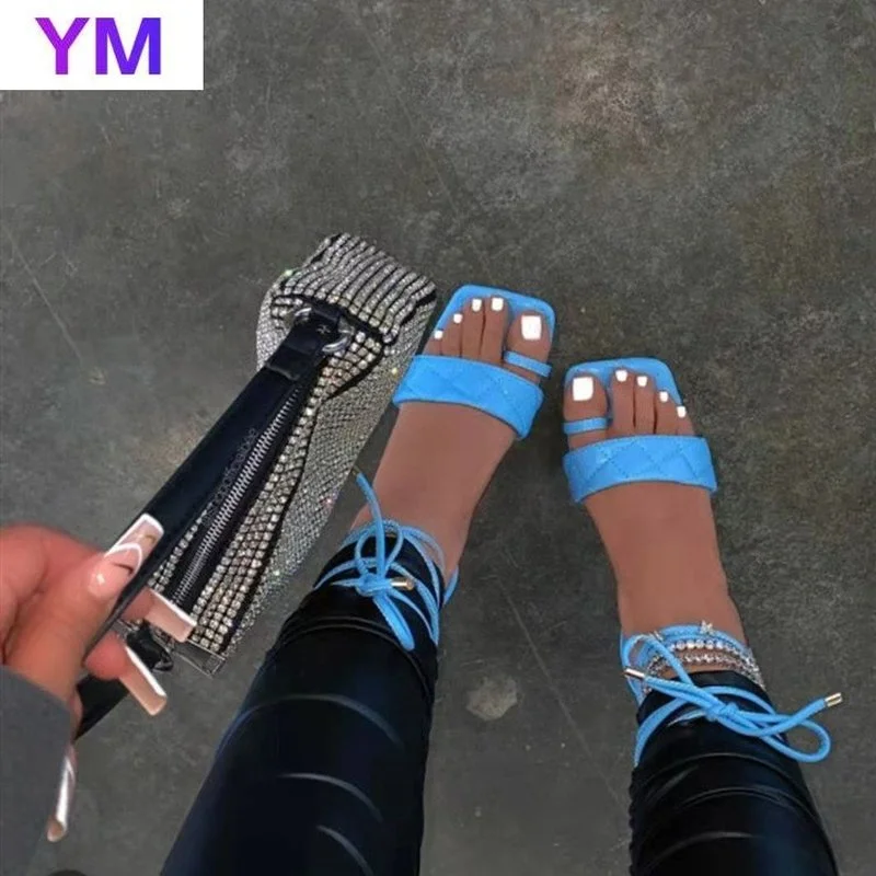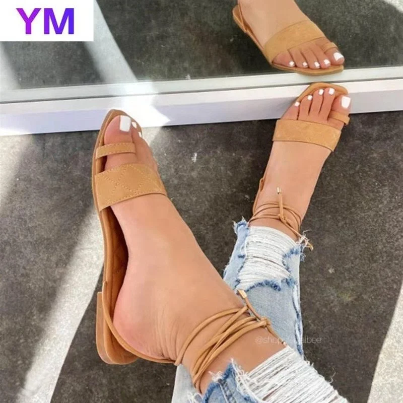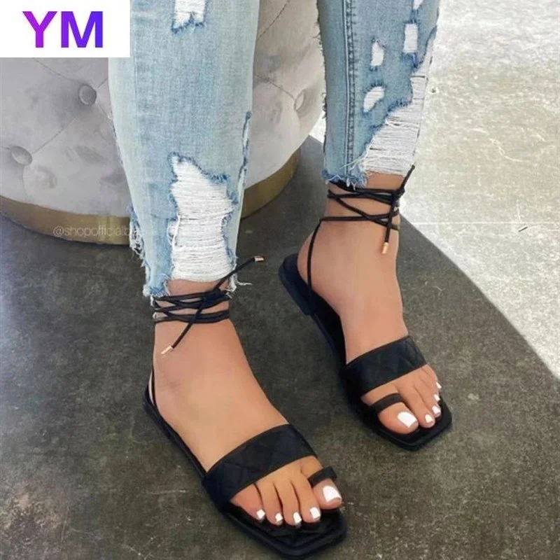 Новые женские сандалии-гладиаторы на плоской подошве, женские туфли с застежкой и перекрестными ремешками, пляжные сандалии с квадратным носком, шлепанцы, 2021