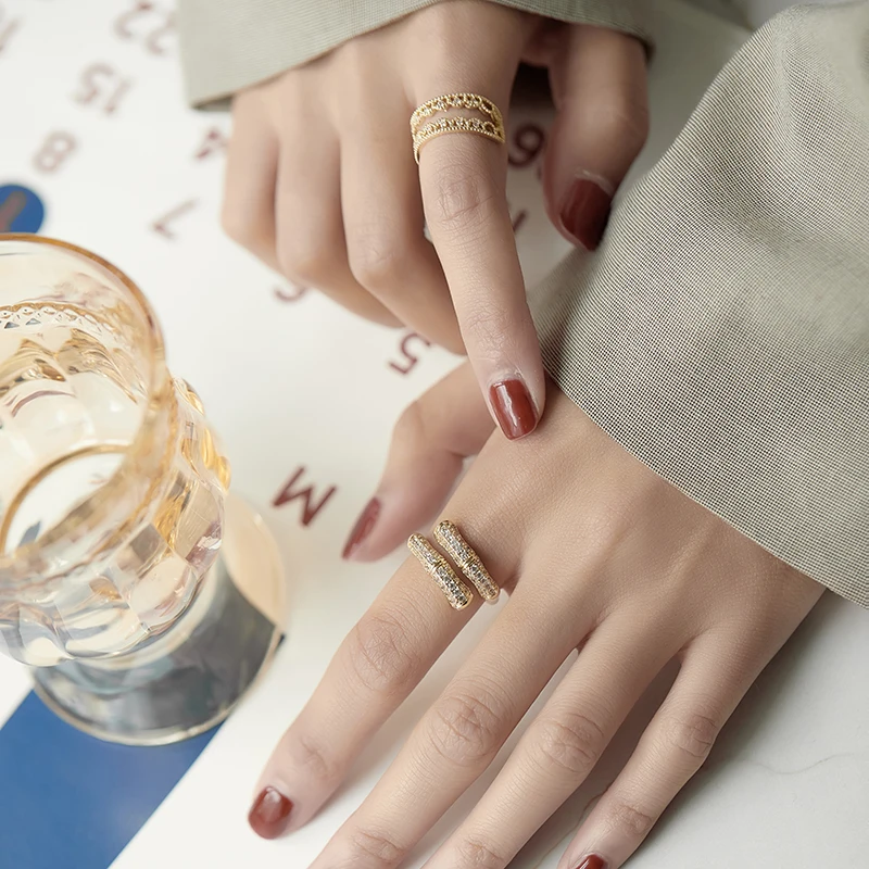 Набор колец в готическом стиле Женский, открытые кольца с бамбуковым скелетом под золото, бижутерия в Корейском стиле, необычное вечернее Ювелирное Украшение, 2021
