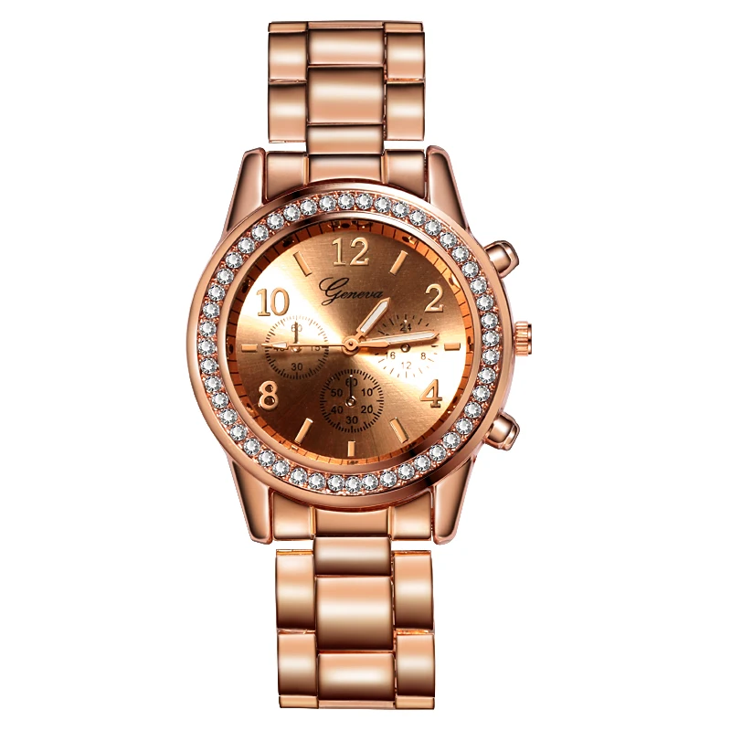 Модные Женевские повседневные хрустальные стразы наручные часы люксовый бренд женские часы женские золотые Стальные кварцевые часы Relogio Feminino