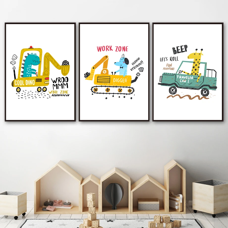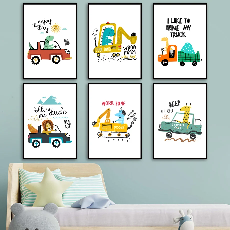Картина с изображением городского водителя автомобиля, Льва, динозавра, жирафа, Настенная картина, Картина на холсте, детская комната, скандинавский плакат, декоративные картины